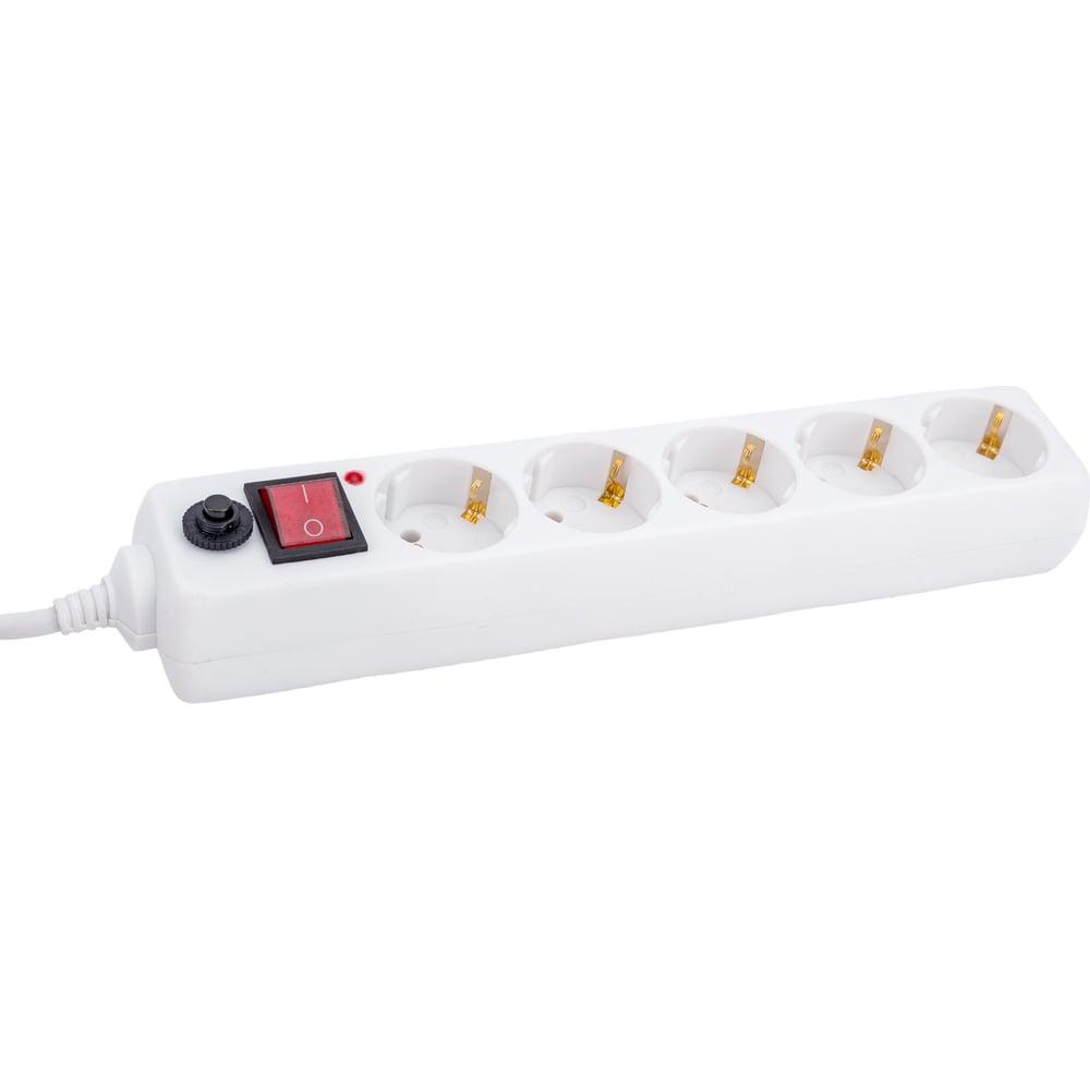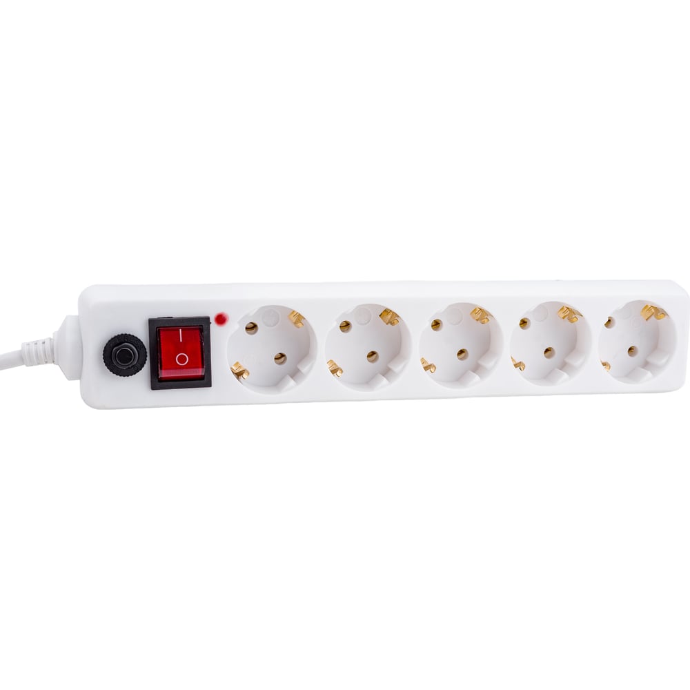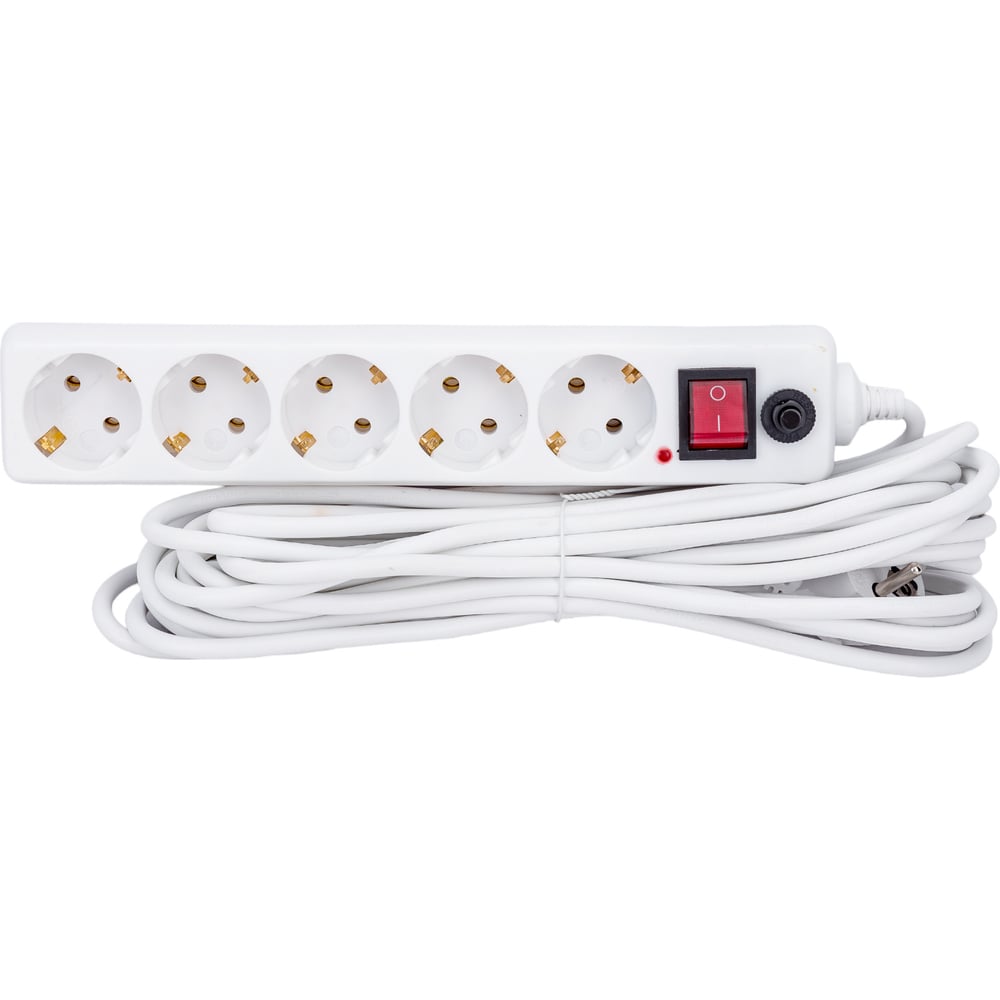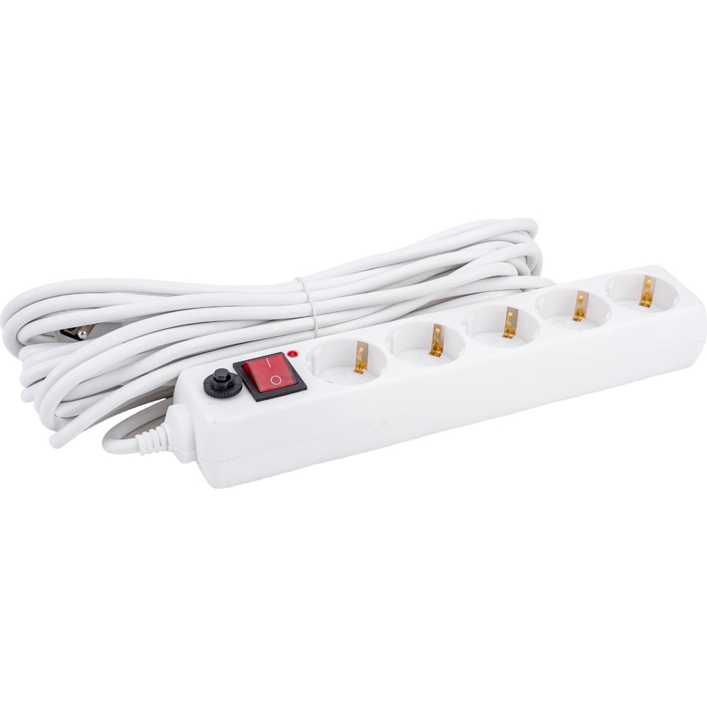 Сетевой фильтр General Lighting Systems 5 розеток, с заземлением и выключателем, 10 метров, 16А, Белый GPS-5-16-3x1-1000-W 471008