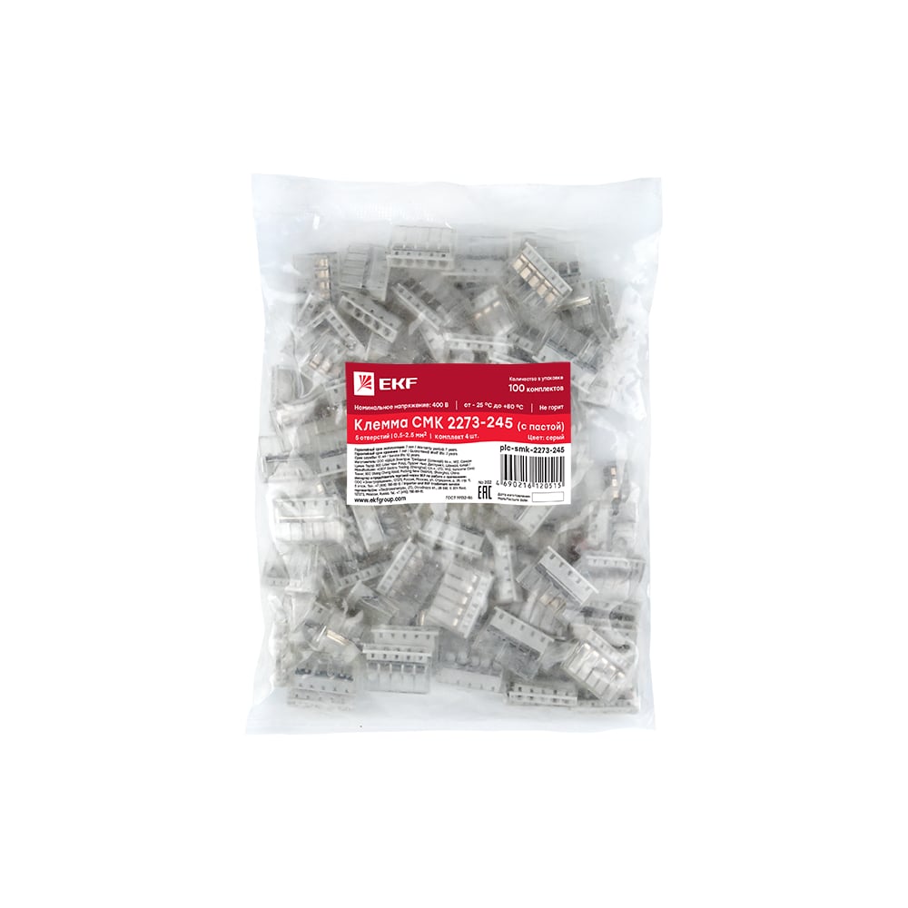 Строительно-монтажная клемма EKF СМК, 2273-245, 5 отверстий, 0,5-2.5мм2 100 шт PROxima plc-smk-2273-245