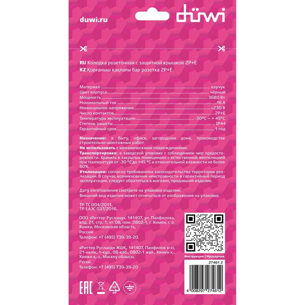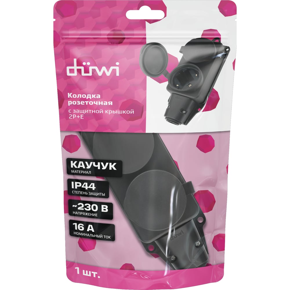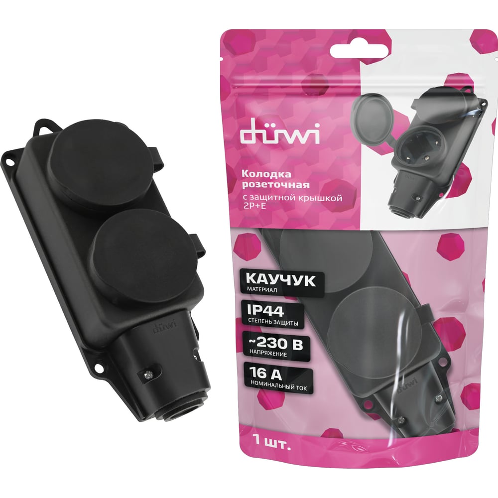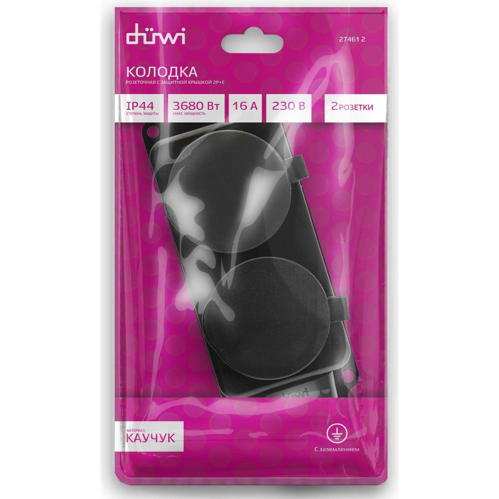 Каучуковая колодка duwi 2 гнезда с заземлением IP44 черная 16A 27461 2