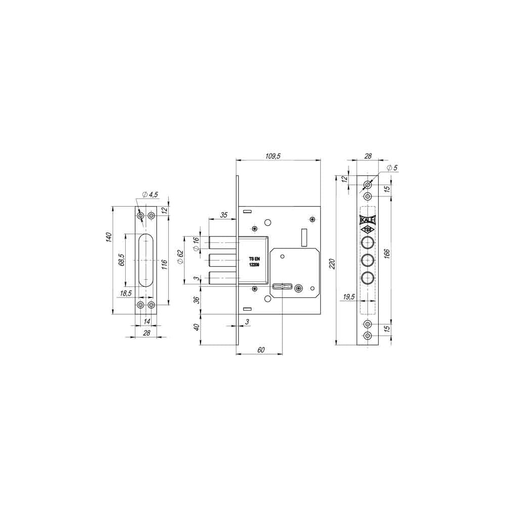 | Удаление ключевого отверстия (Backset) | 60 мм |