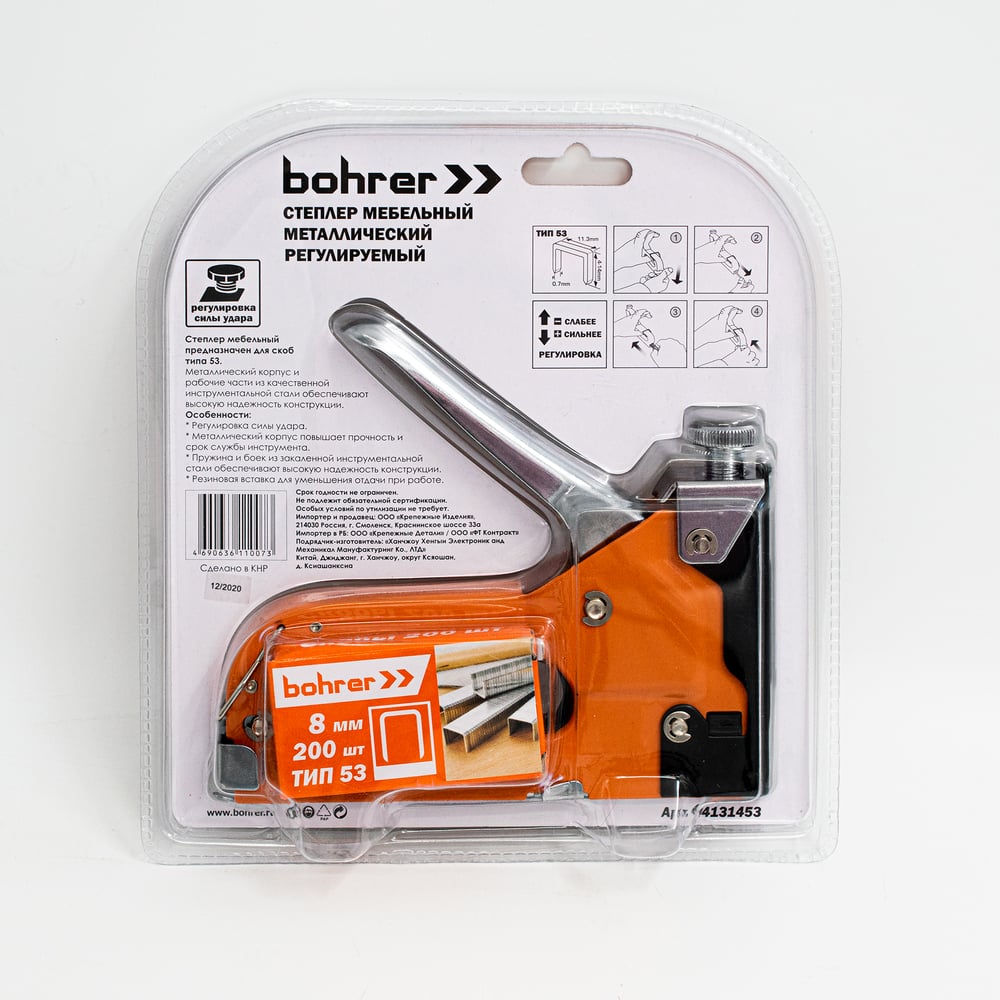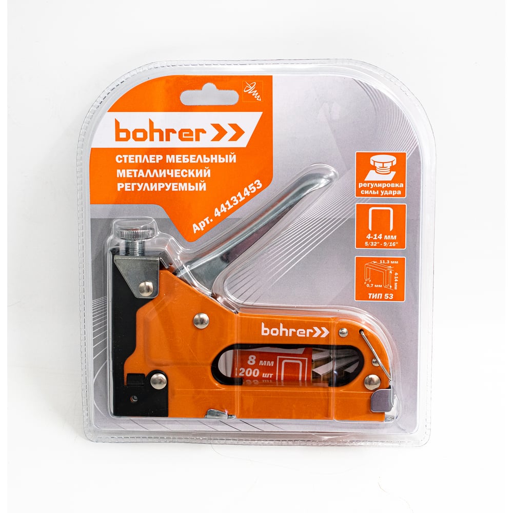 Мебельный степлер Bohrer 4-14 мм усиленный, тип скобы 53, с регулировкой силы, металлический 44131453