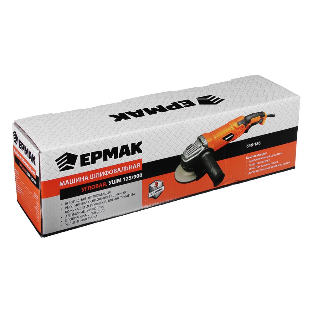 Угловая шлифовальная машина ЕРМАК УШМ-125/900 900Вт, 125 мм, 11500 об/ мин. рег. з. кожуха б/ кл 646-186