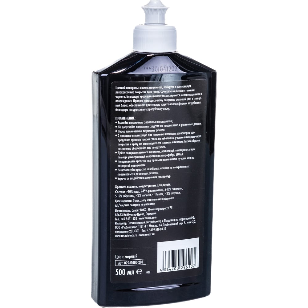 Цветной полироль с воском SONAX черный NanoPro 0,5л 296100