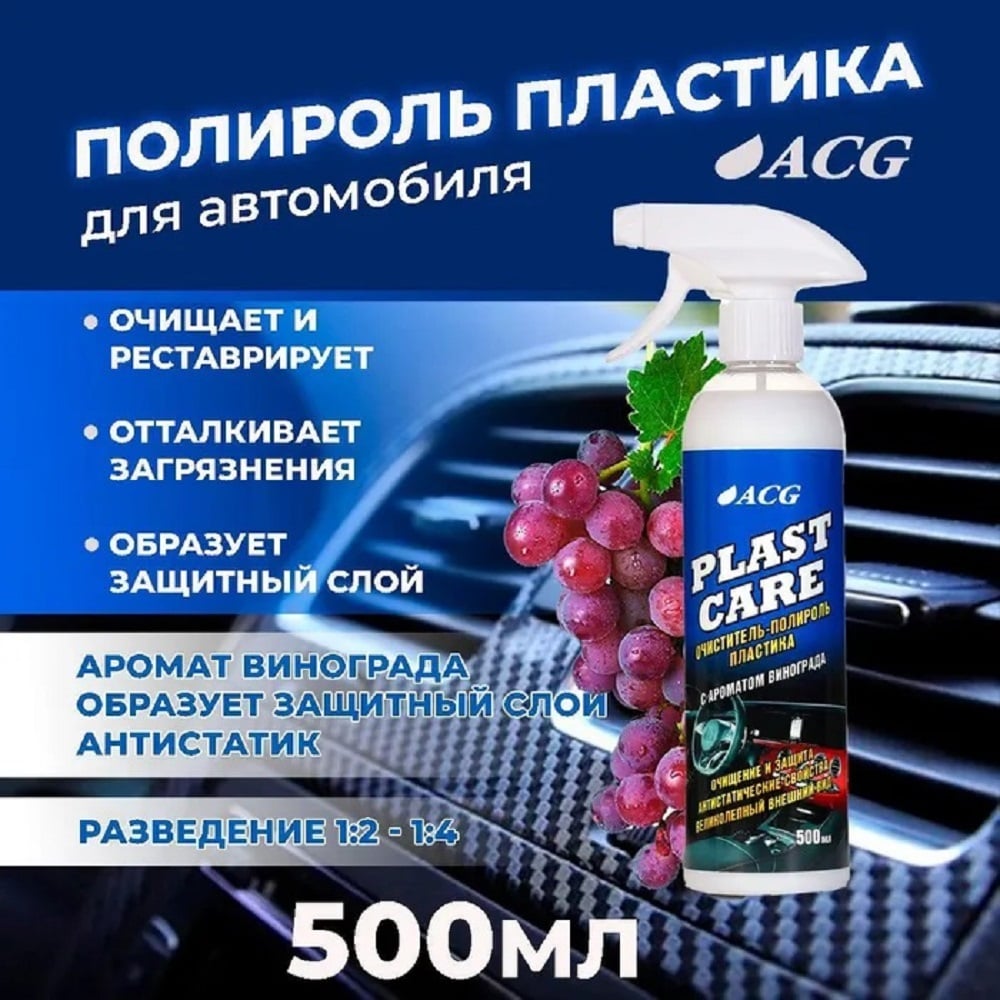 Очиститель-полироль пластика ACG PLAST CARE с ароматом винограда, 500 мл 1014743