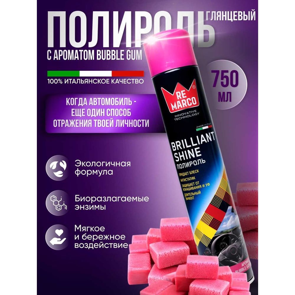 Полироль для пластика салона RE MARCO глянец, 750 мл, аэрозоль, бубль гум RM-808