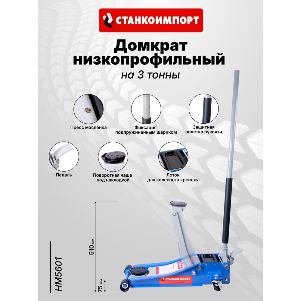 Гидравлический подкатной домкрат Станкоимпорт на 3 тонны 75-510 мм HM5601