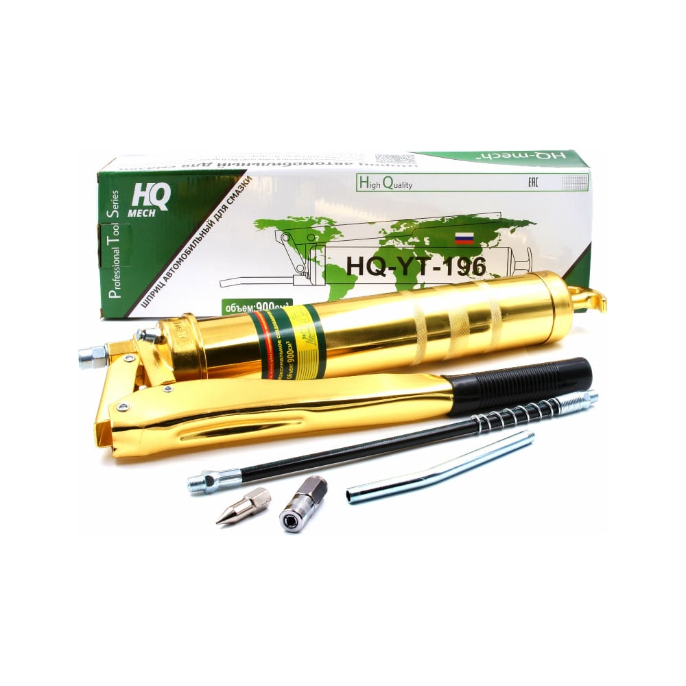 Шприц для консистентной смазки HQ-mech 900 мл, рычажно-плунжерный, 2 плунжера, покрытие gold 2 УТ000002061