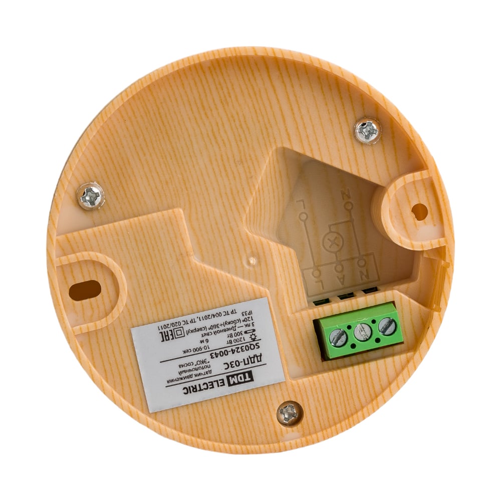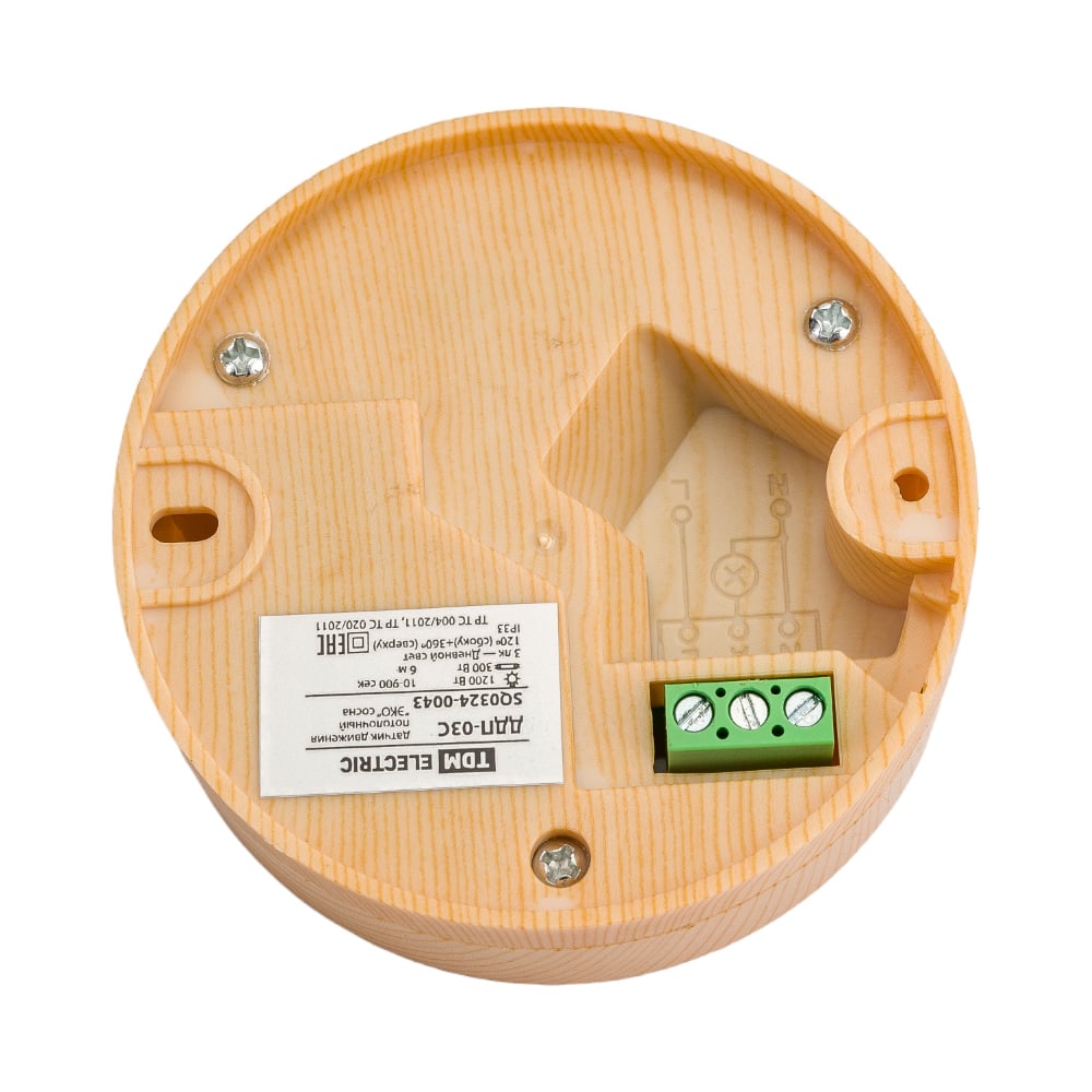 Датчик движения TDM ELECTRIC ДДП-03С "ЭКО" 1200Вт, 10-900с, 6м, 3+Лк, 120 сбоку+360 сверху градусов, IP33, сосна SQ0324-0043