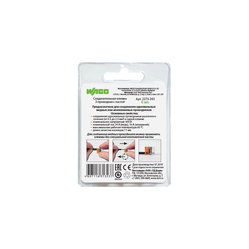 | Количество зажимаемых проводов | 3 шт |