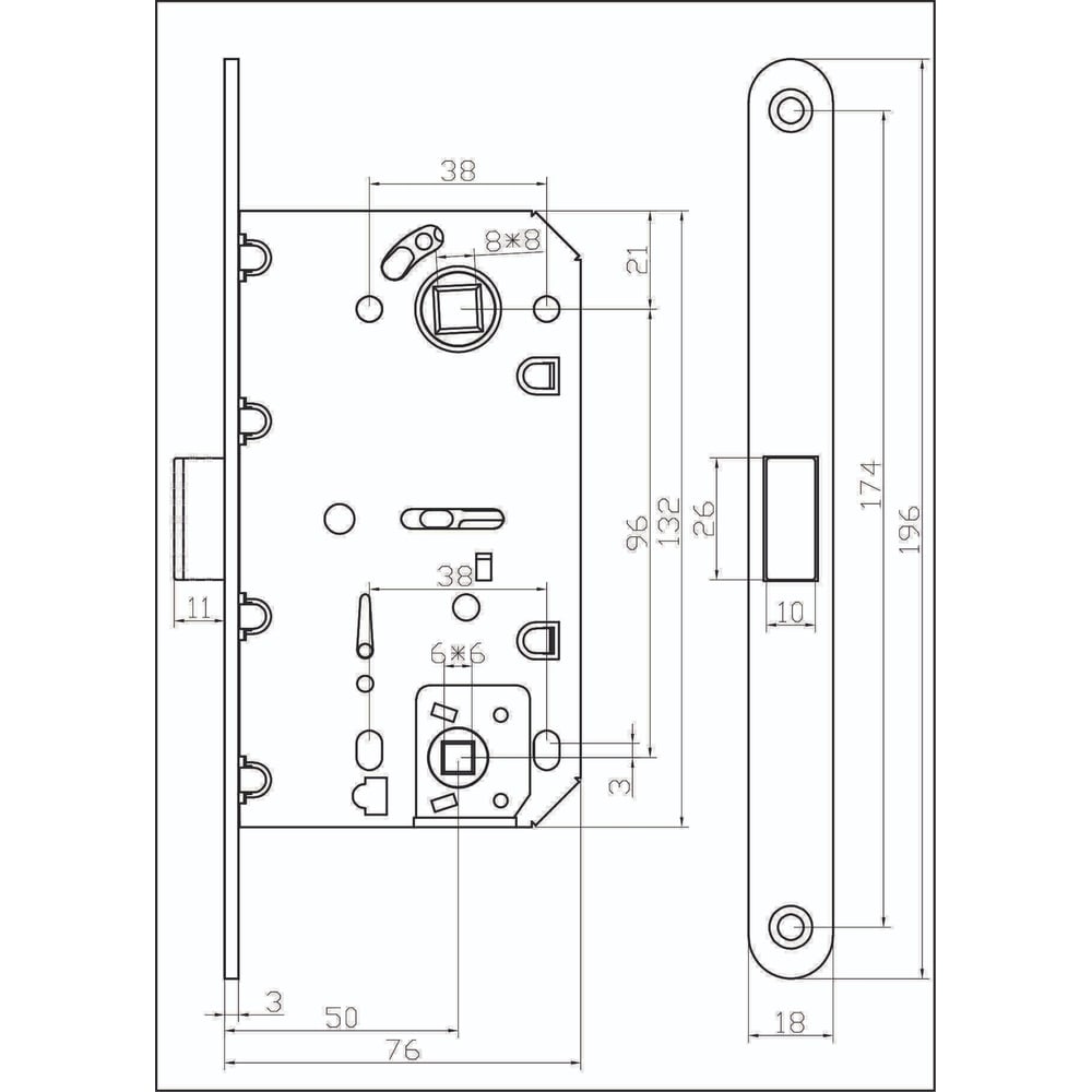 Высота 196 мм Длина 76 мм Комплектация внутренний механизм Материал ЦАМ Покрытие гальваника Ширина 18 мм Цвет черный никель Коллекция WC-5096 Назначение межкомнатная дверь Межосевое расстояние 96 мм Палитра серый Материал двери дерево Под завертку да Тип защелки магнит Бэксет 50 мм