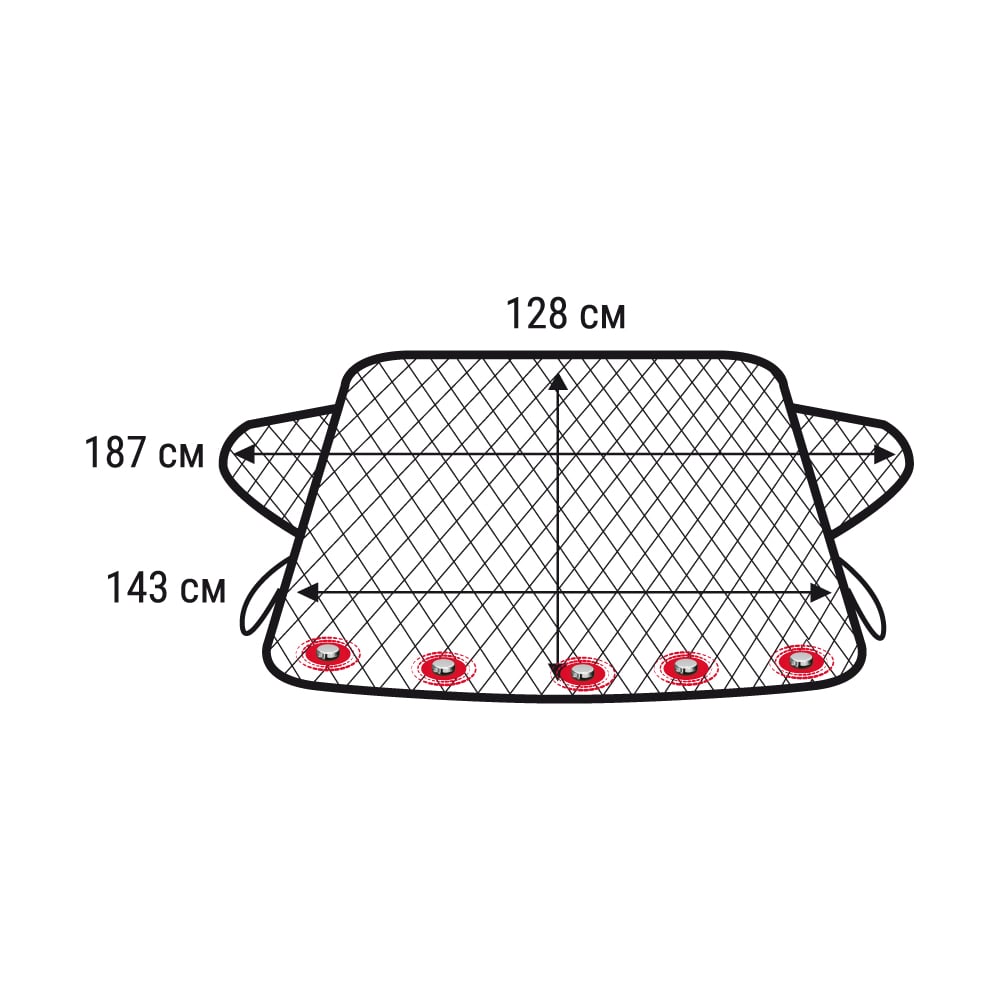 Всесезонный защитный чехол на лобовое стекло автомобиля AUTOPROFI 187x128 см, прочный трехслойный материал: фольгированный полиэтилен (PE), слой синтетического полимерного материала AUTOPROFI WPR100