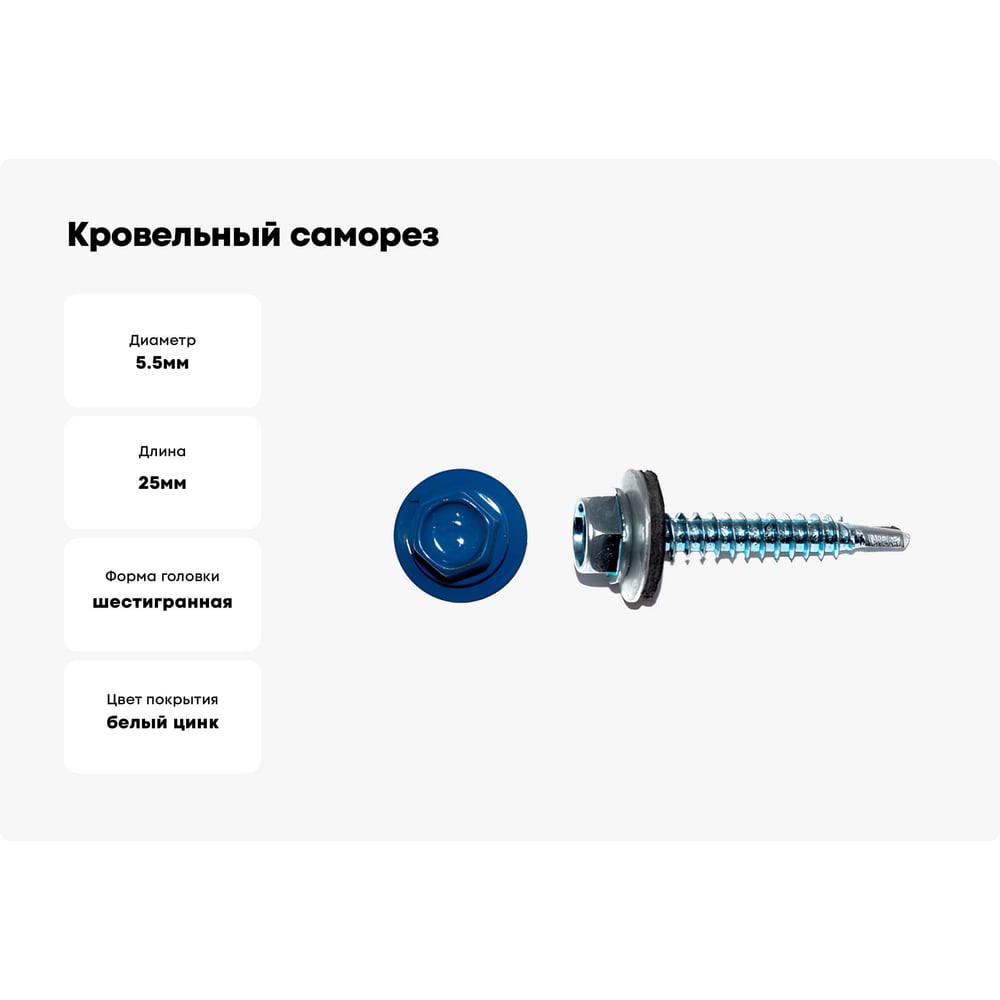 Кровельный саморез КРЕП-КОМП 5,5x25, RAL 5005, насыщенный синий, 3000 шт. ск55255005к