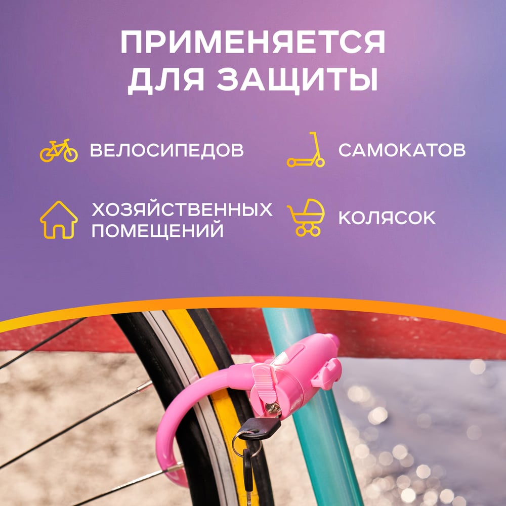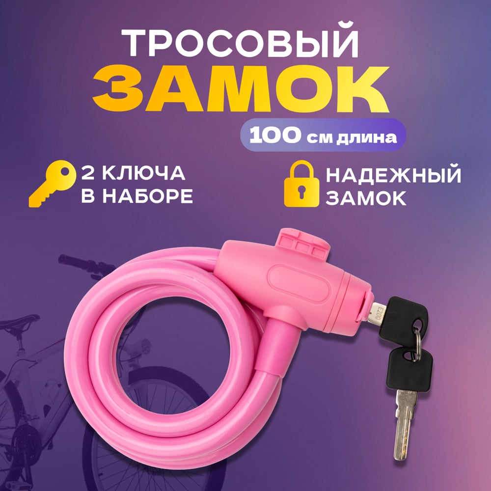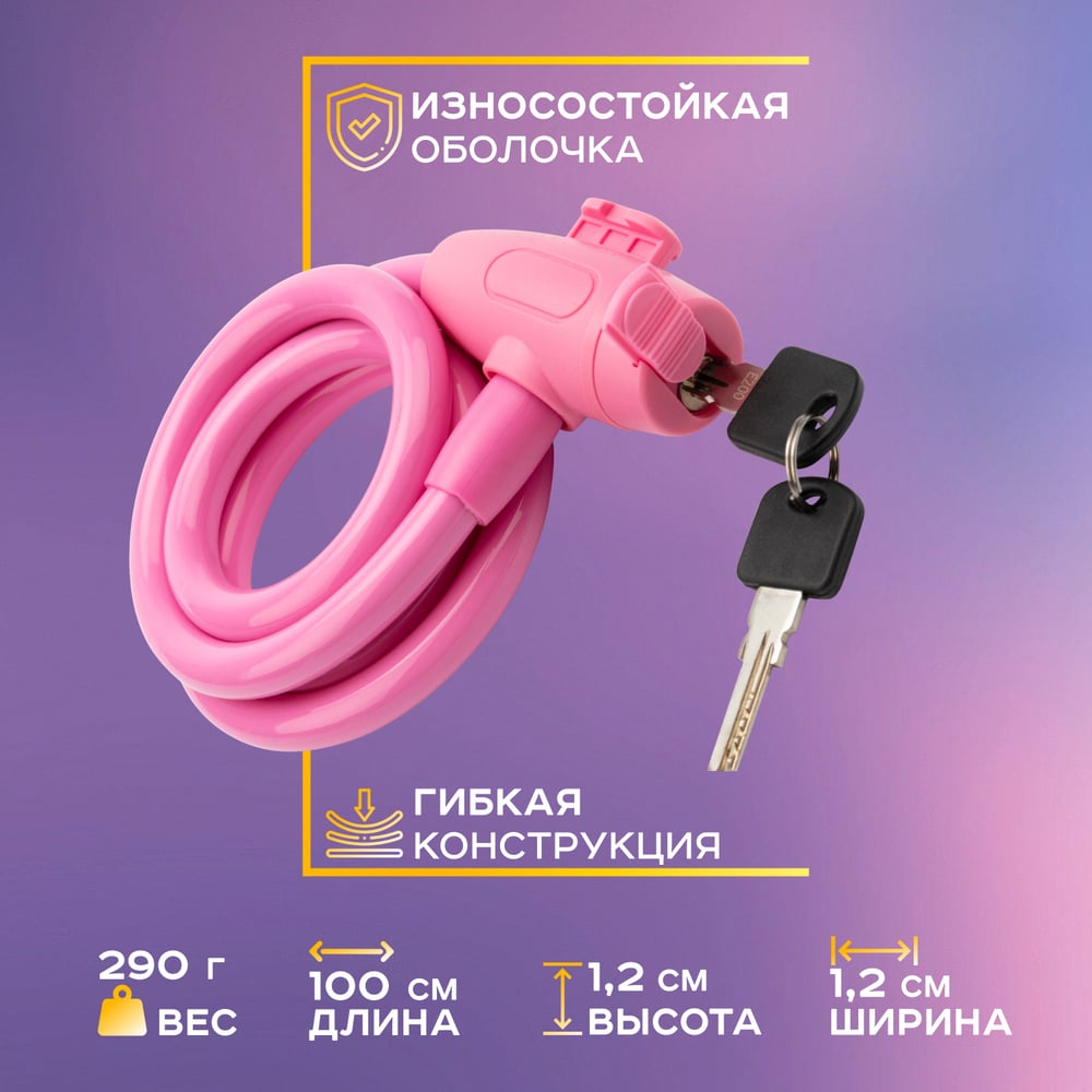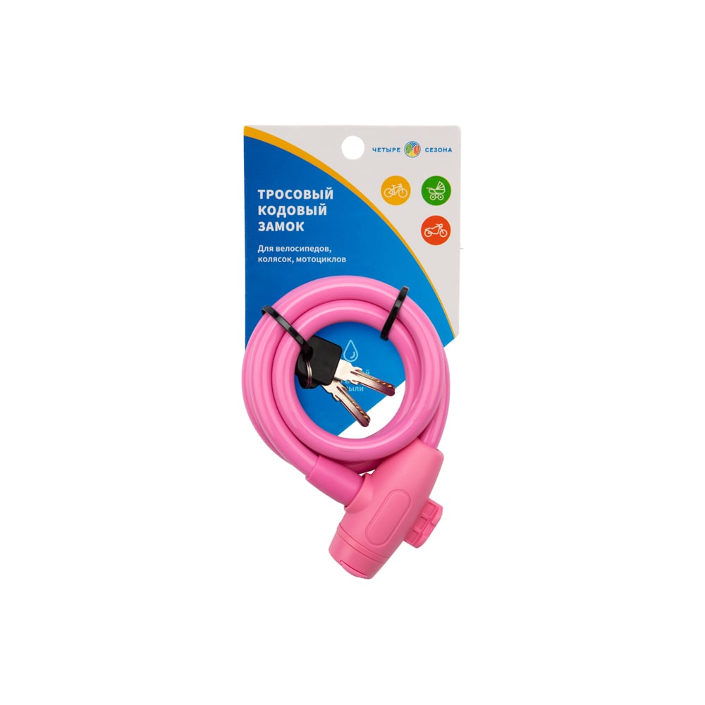 Тросовый замок для велосипедов и колясок с ключом Четыре сезона 100 см, розовый 79-0304