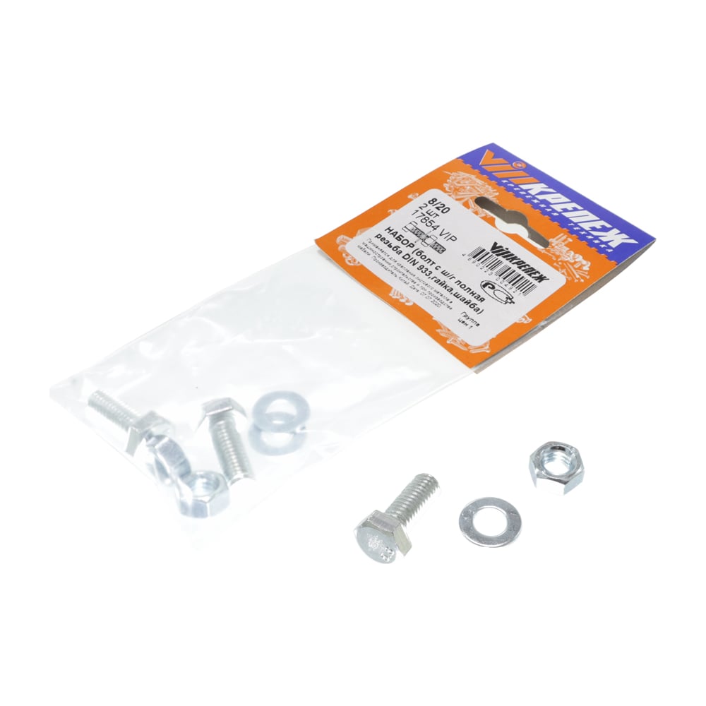 Болт с шестигранной головкой vipкрепеж набор, полная резьба, din 933, 8x20, 2 шт. 17854 VIP