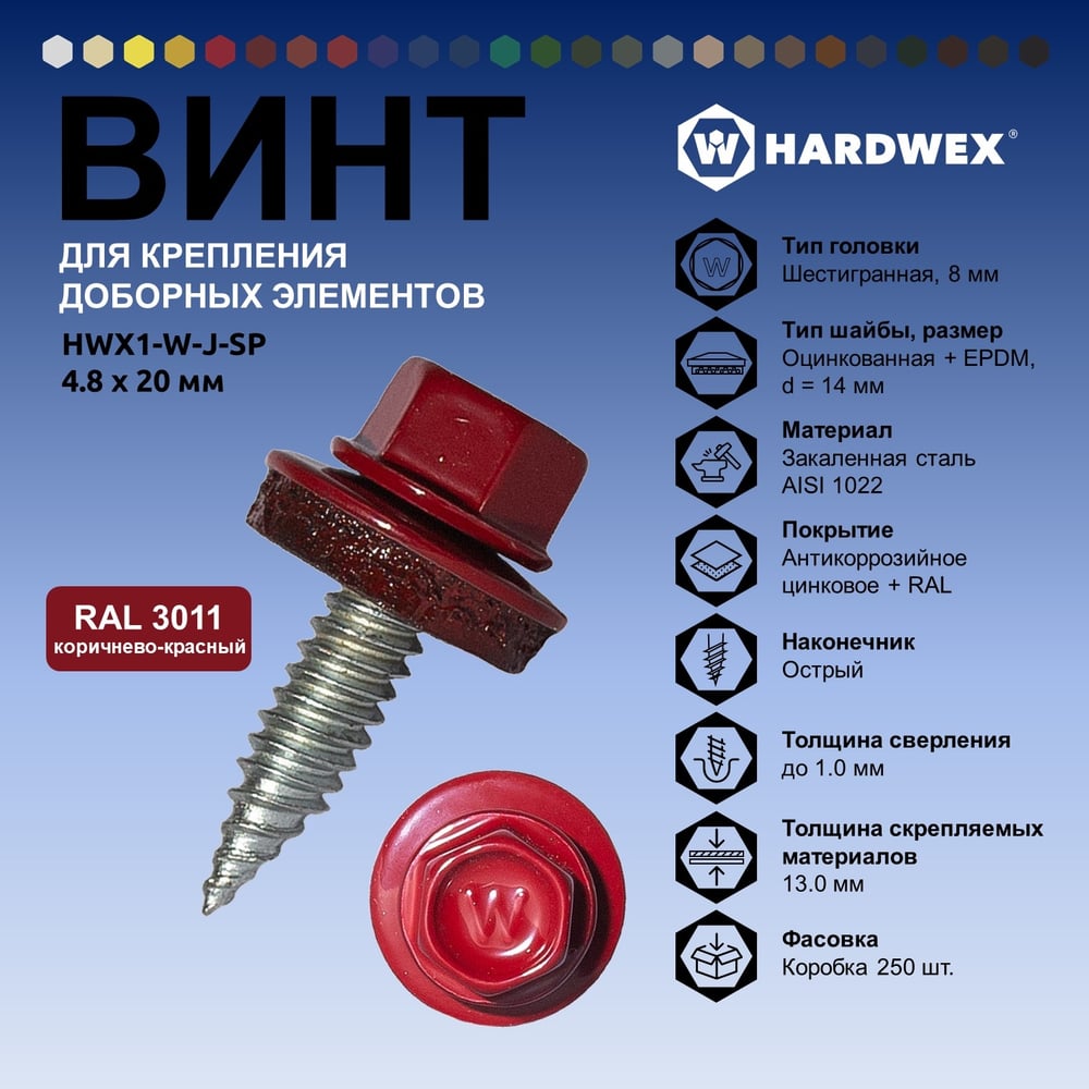 ТМ HWX1-W-J-SP-4.8x20 мм., RAL 3011 (250 шт.)