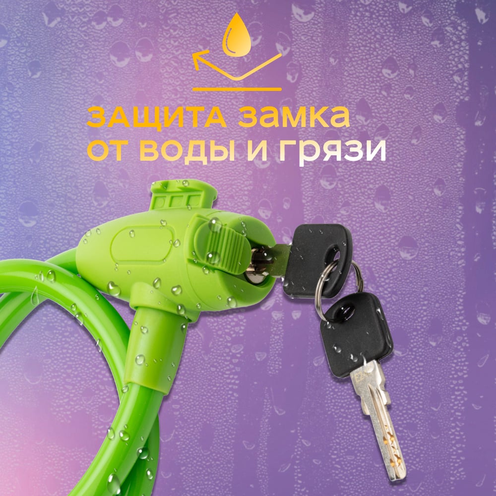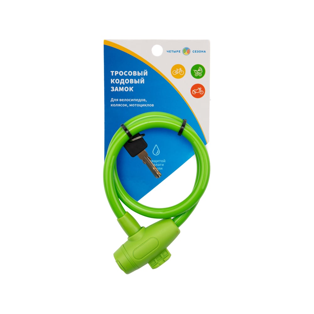 Тросовый замок для велосипедов и колясок с ключом Четыре сезона 65 см, зеленый 79-0363