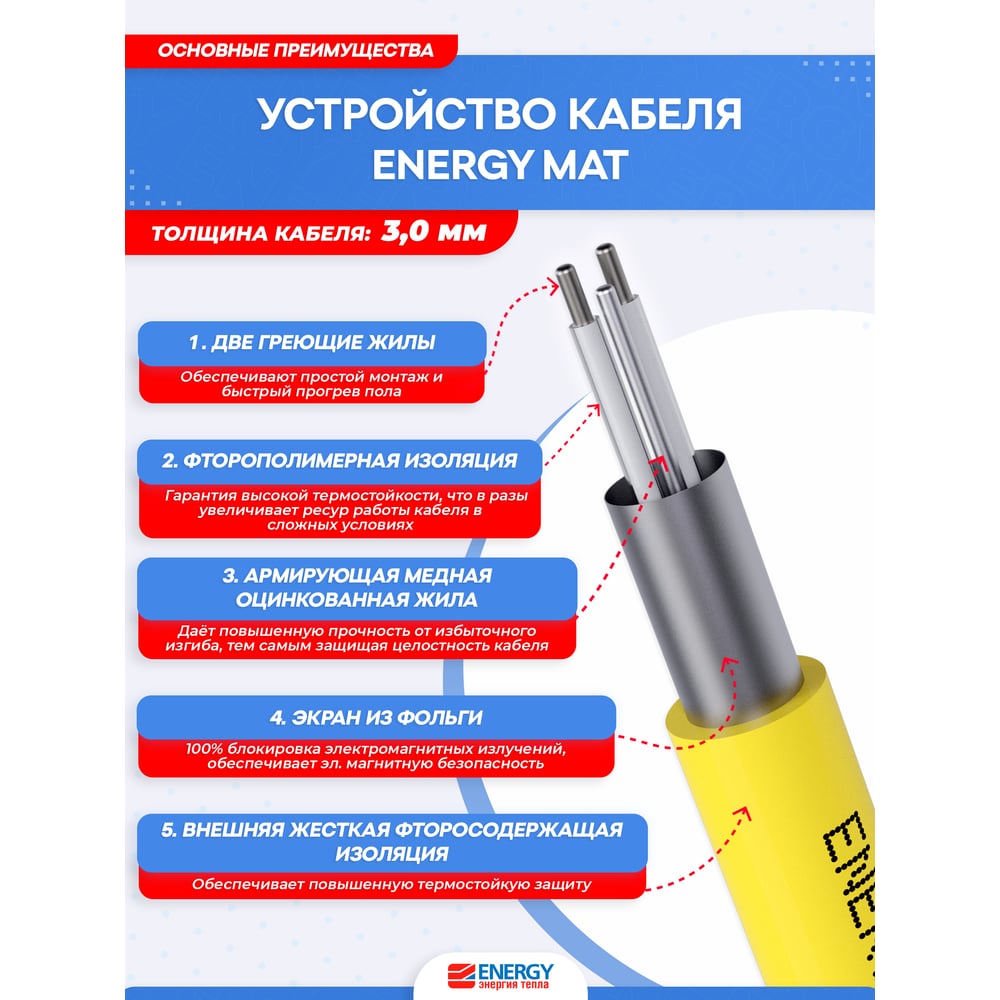 Теплый пол (мат) 1,30 - 210 Вт к/т без термостата ENERGY 00-УТ-00627