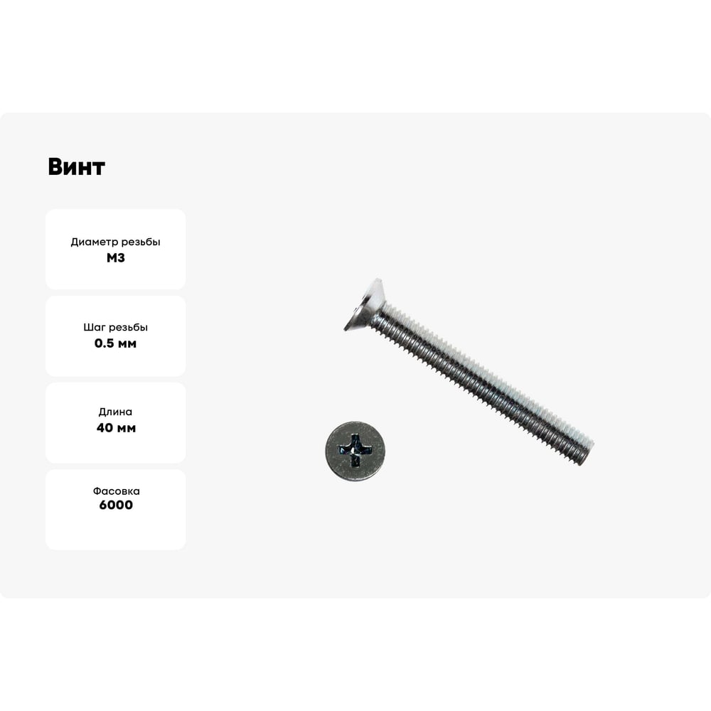 Винт КРЕП-КОМП DIN 965, потайной, цинк, 3x40 6000 шт. вп340