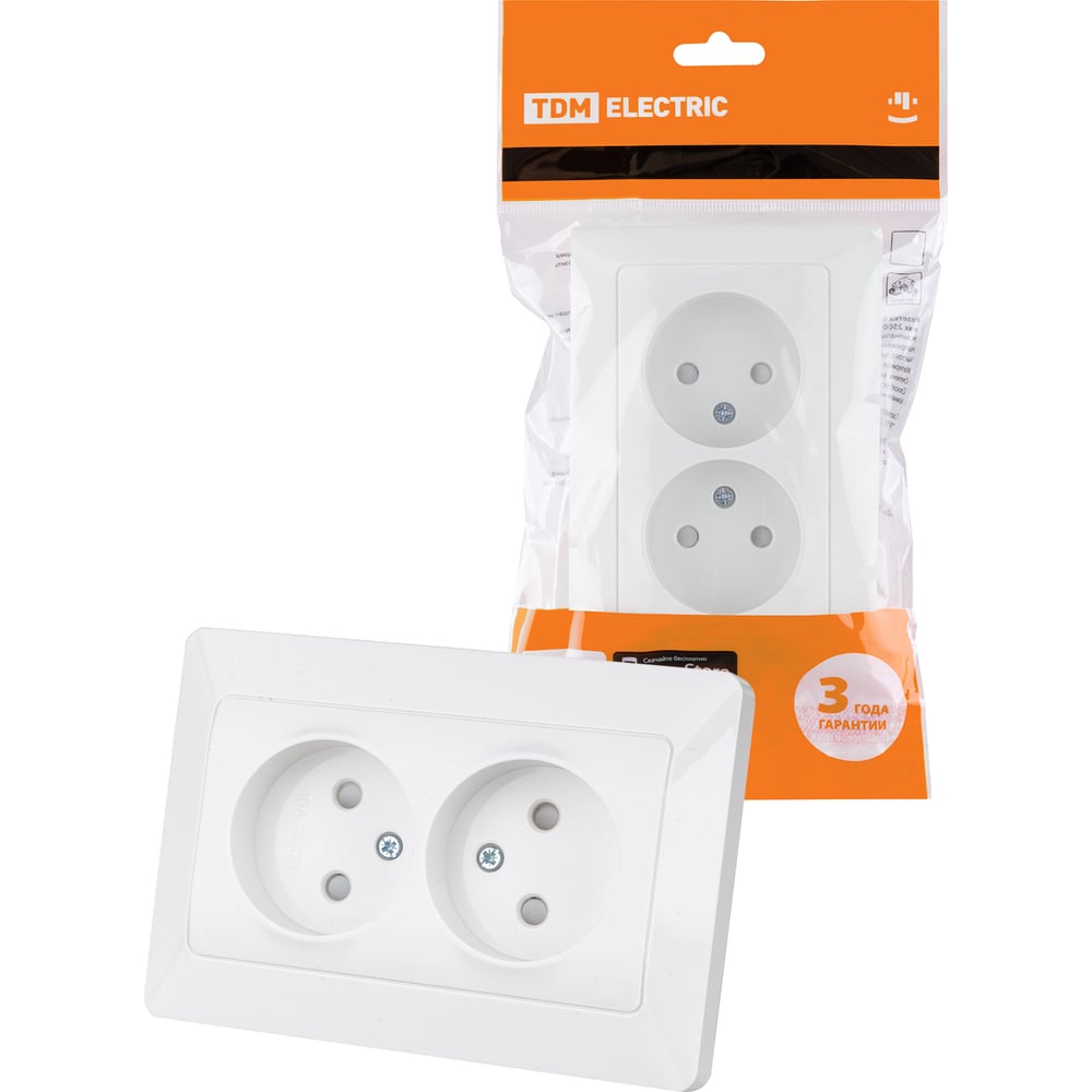 Двойная розетка TDM ELECTRIC 2П с защитными шторками 10А 250В белая "Ильмень" SQ1823-0015