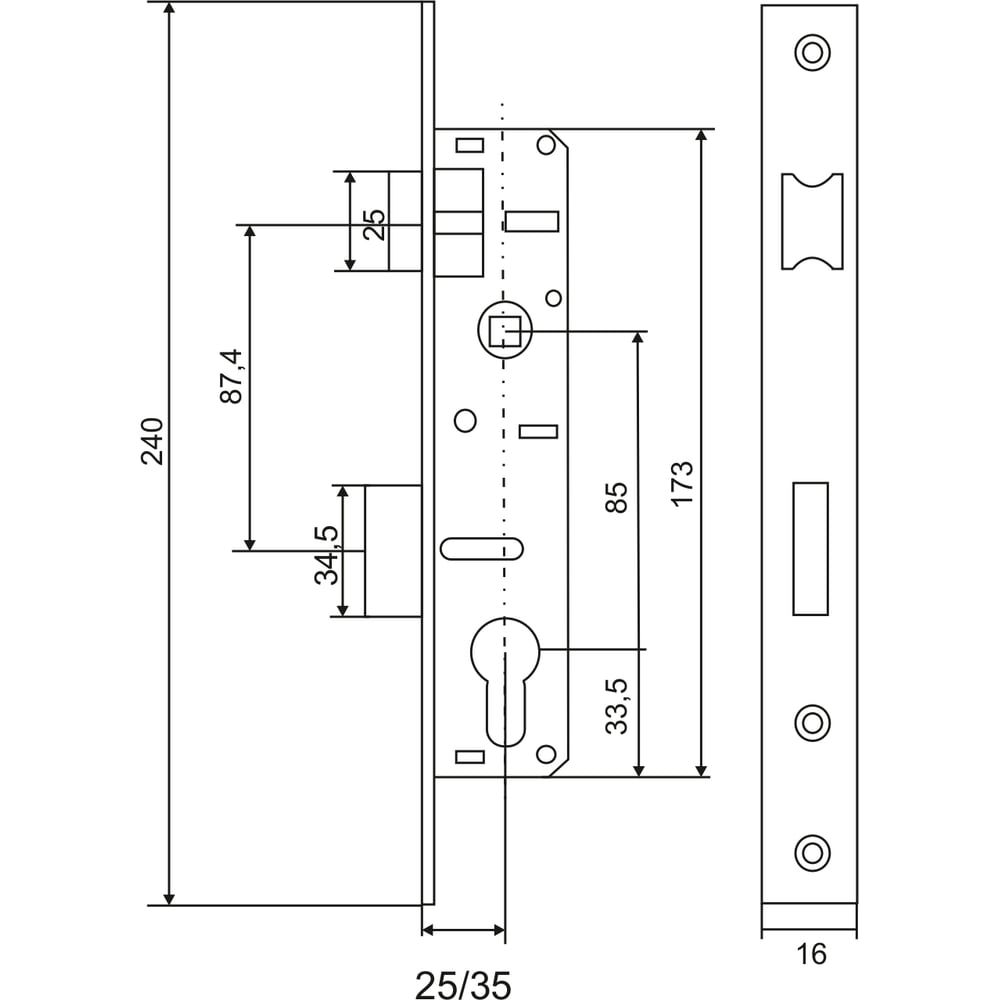 | Удаление ключевого отверстия (Backset) | 25 мм |