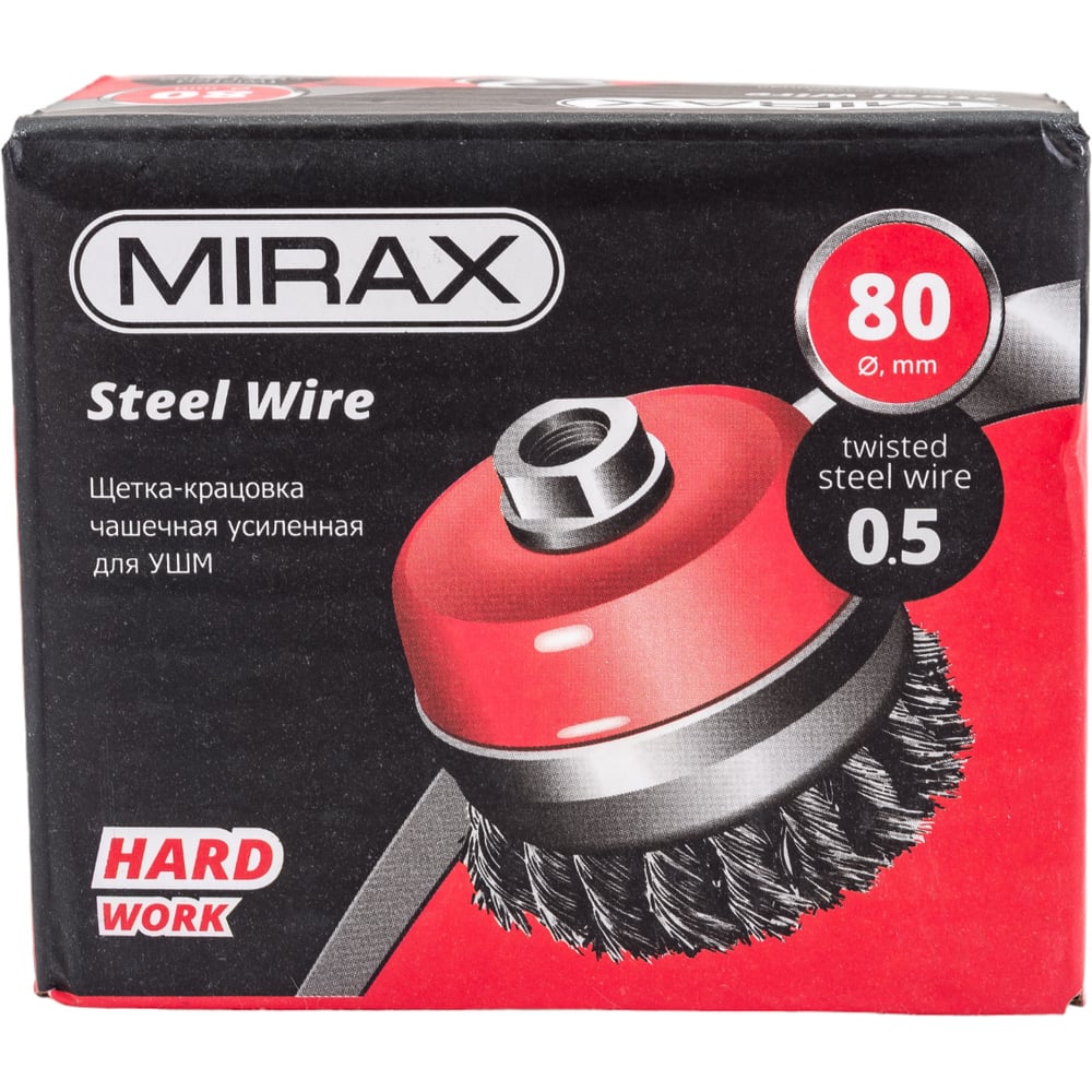 Щетка чашечная усиленная для УШМ (жгутированная стальная проволока 0,5 мм, 80 мм) MIRAX 35144-080