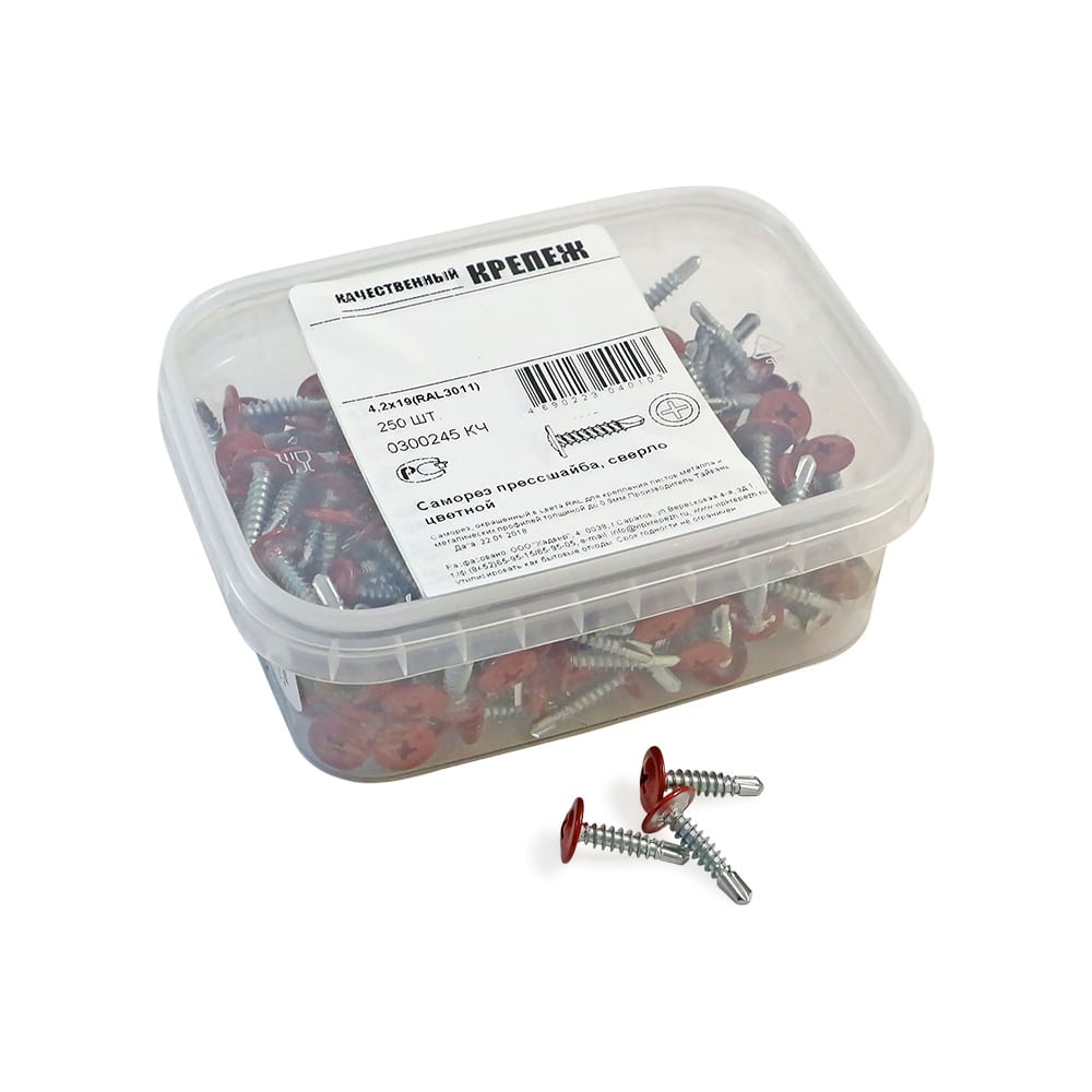 Прессшайба Качественный КРЕПЕЖ 4.2х19 мм, красно-коричневый RAL 3011, сверло, 250 шт 0300245 КЧ