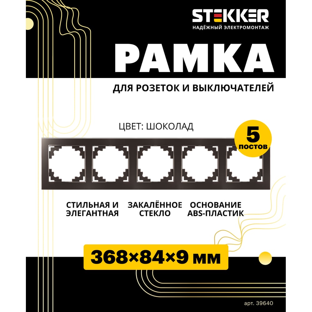 Горизонтальная 5-местная рамка STEKKER серия Катрин, стеклянная, GFR00-7005-04, шоколад 39640