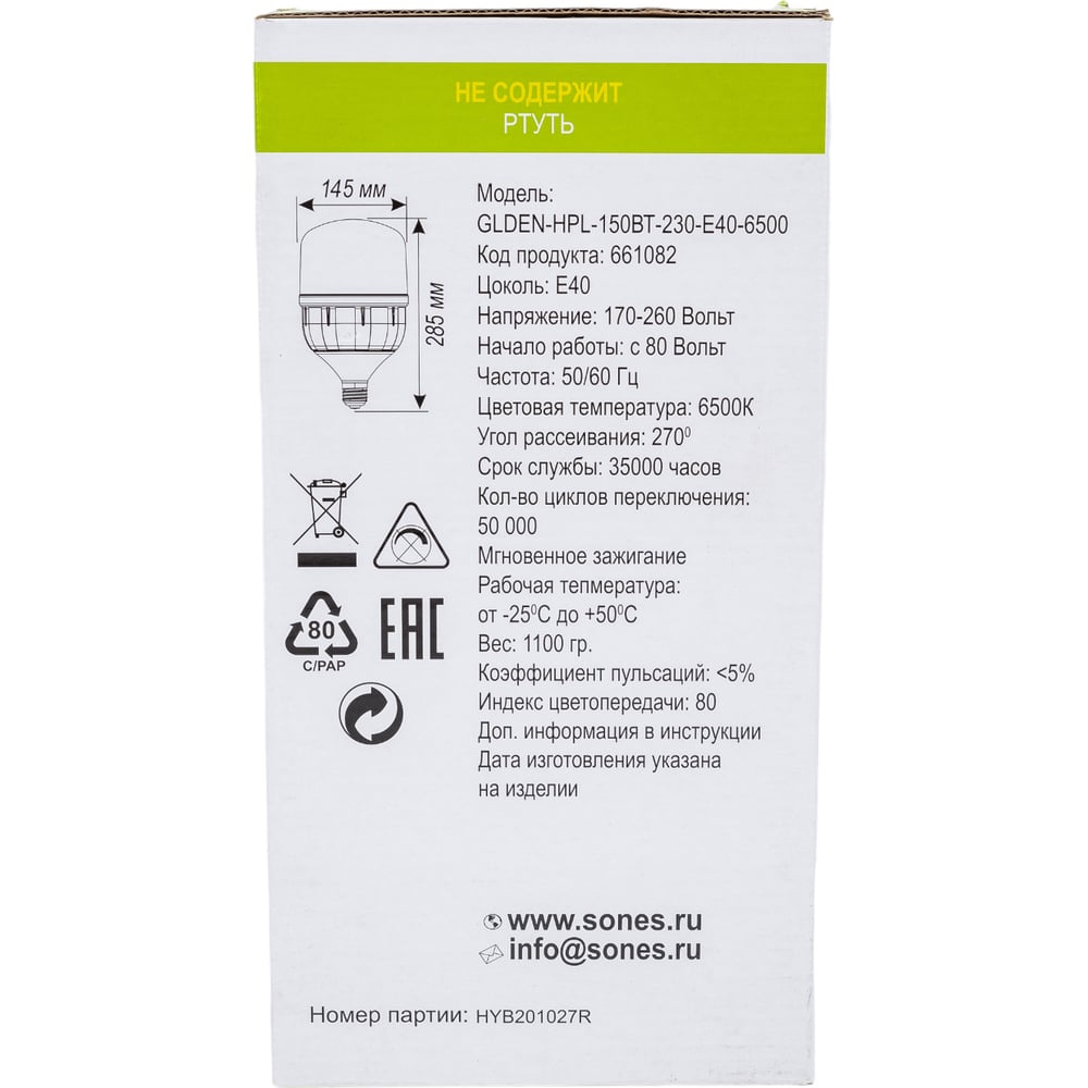 | Световая отдача | 66.667 Лм/Вт |