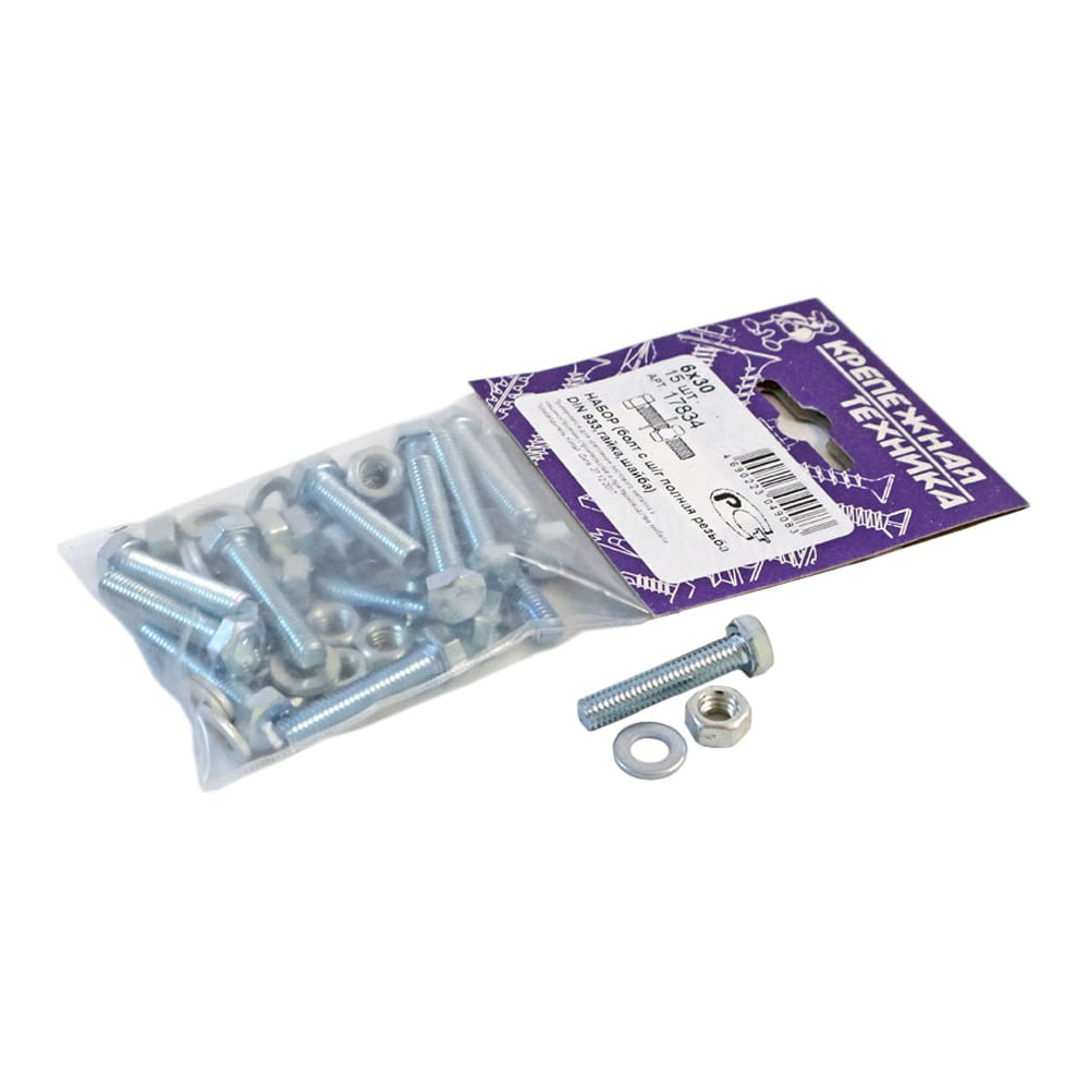Болт с ш/г крепежная техника набор, полная резьба, din 933, 6x30, 15 шт. 17834