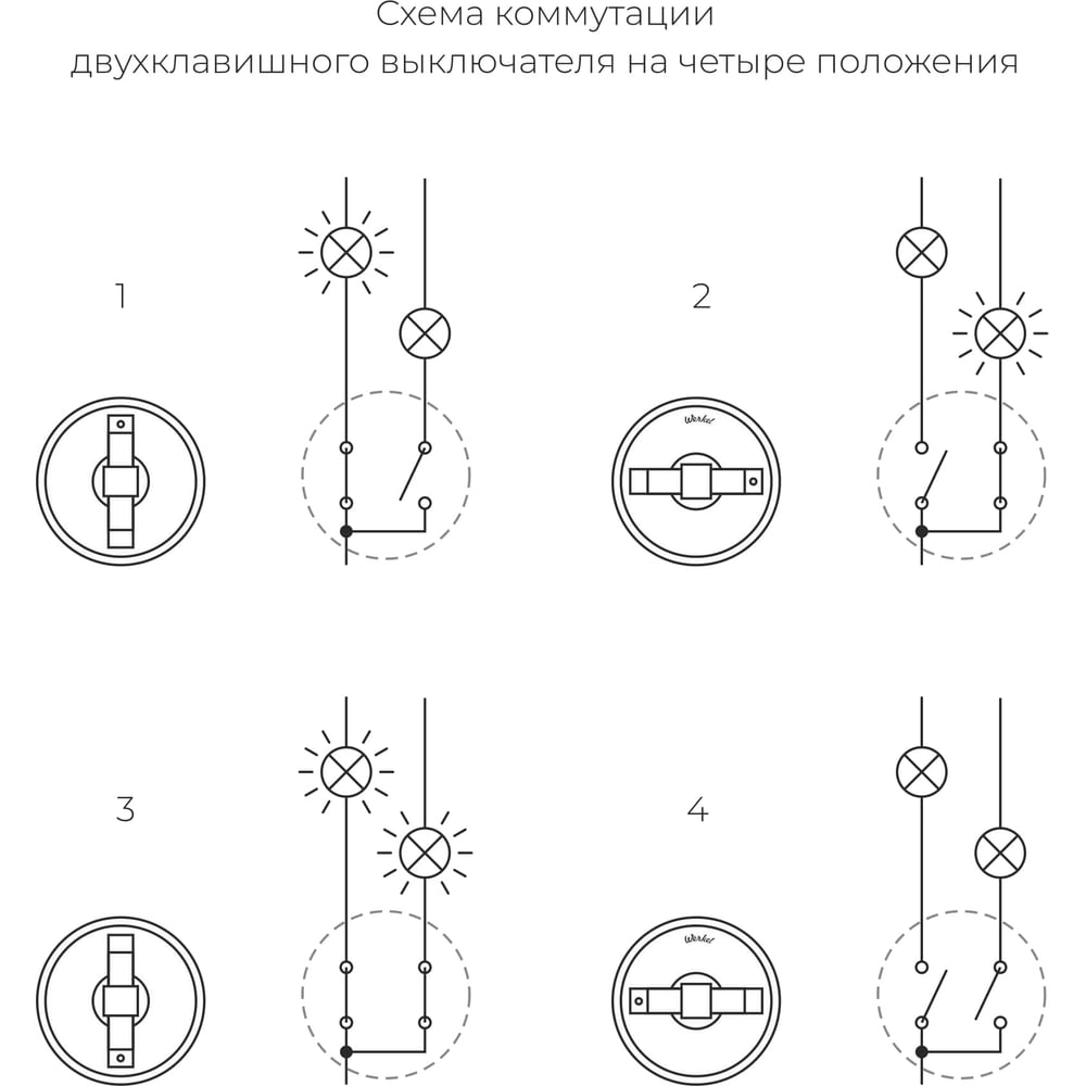 Двухклавишный выключатель на 4 положения WERKEL W5822054/ Vintage (серебро матовый/хром) a058781