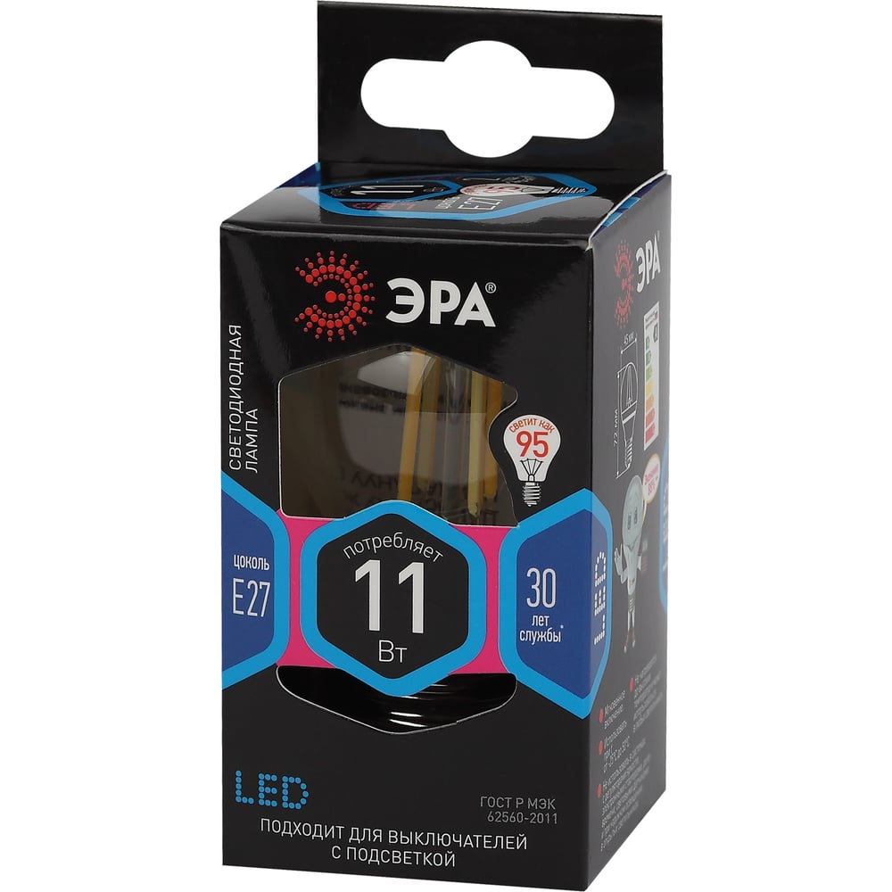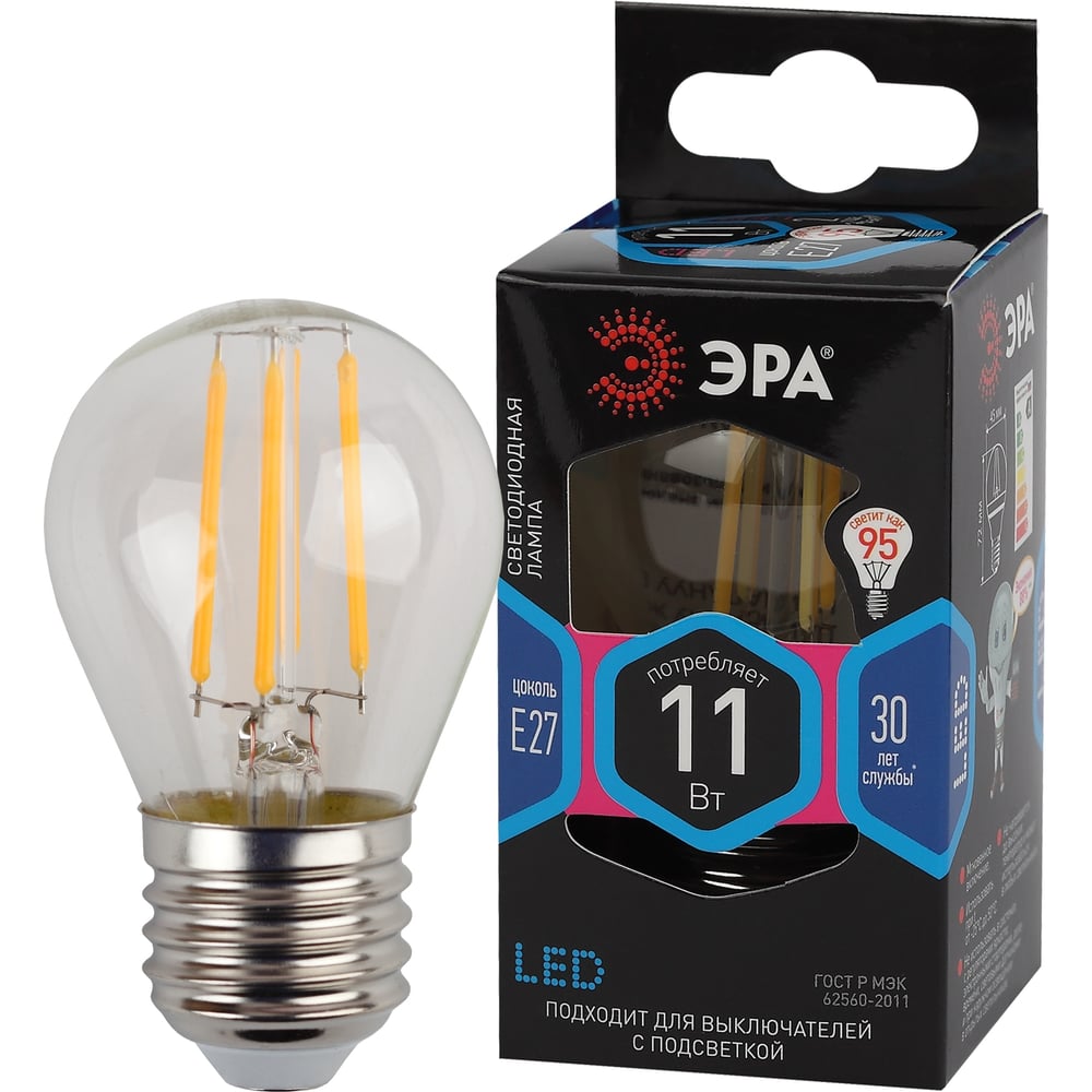 Филаментная лампа ЭРА FLED P45-11w-840-E27 шар, 11 Вт, нейтральная, E27, 10/100/4000 Б0047015