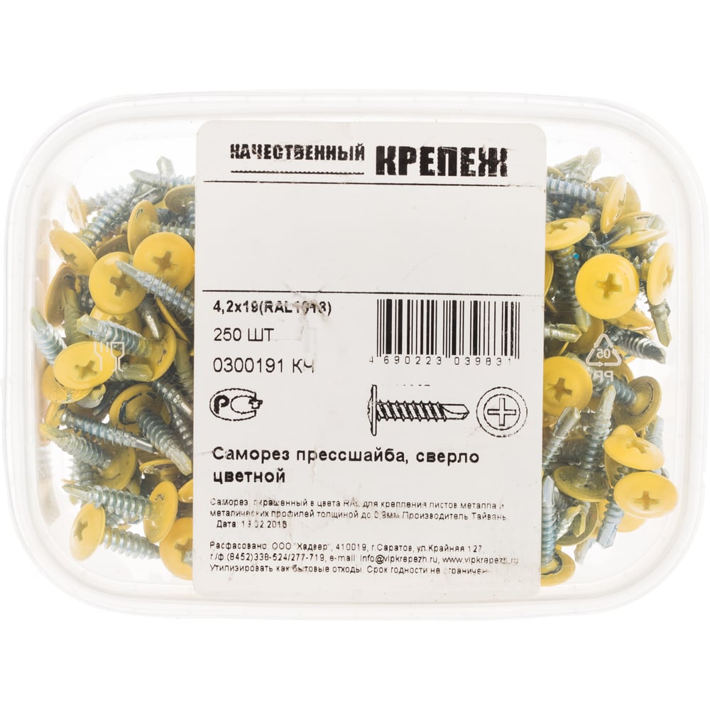 Прессшайба Качественный КРЕПЕЖ 4.2х19 мм, желтый цинк RAL 1018, сверло, 250 шт 0300191 КЧ