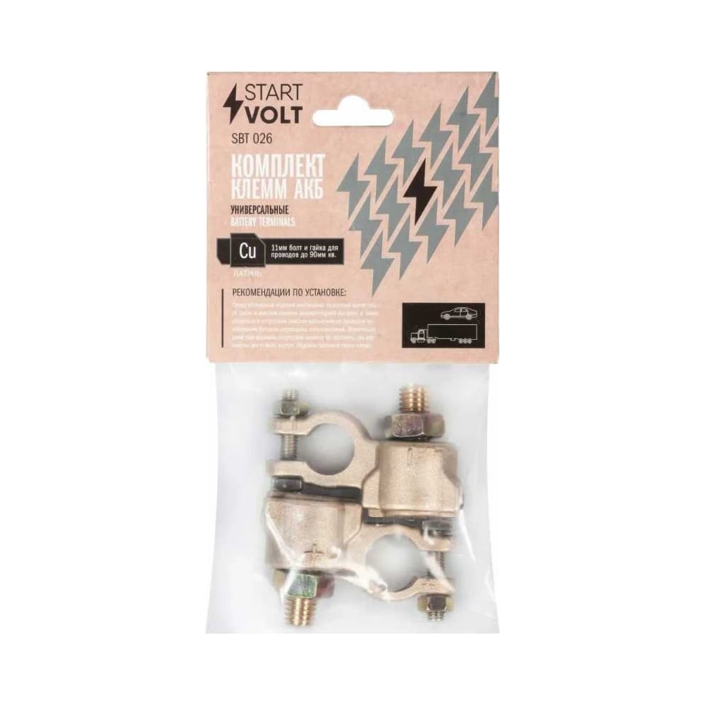 Клеммы АКБ StartVOLT в комплекте латунь, 11мм болт и гайка для проводов до 90мм кв. SBT 026