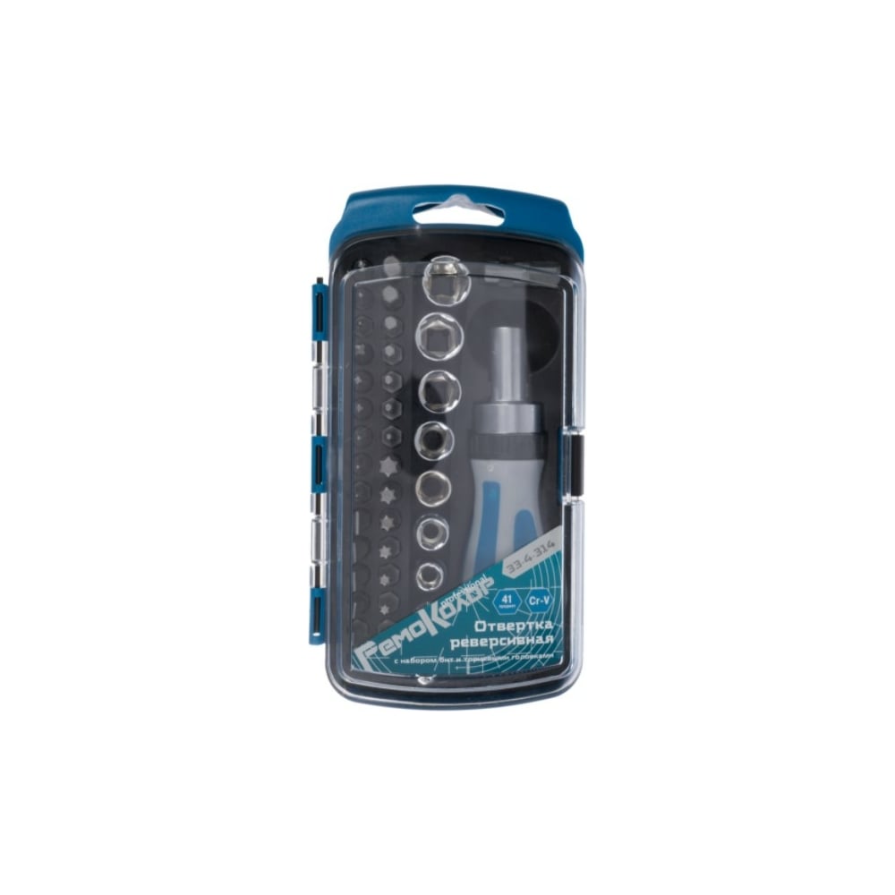 Реверсивная отвертка с набором бит и торцевыми головками РемоКолор 41 пр 33-4-314