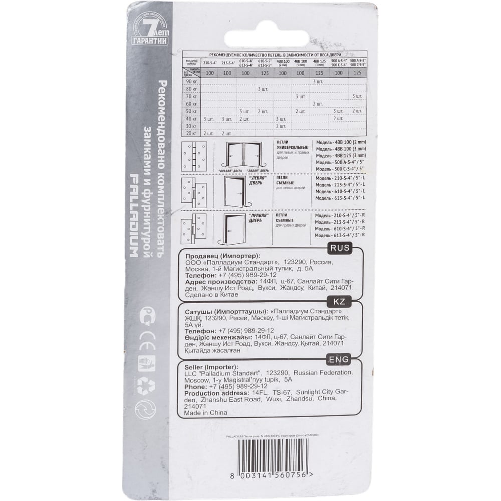Универсальная дверная петля Palladium N 4BB-100 (3mm) PC 00010892