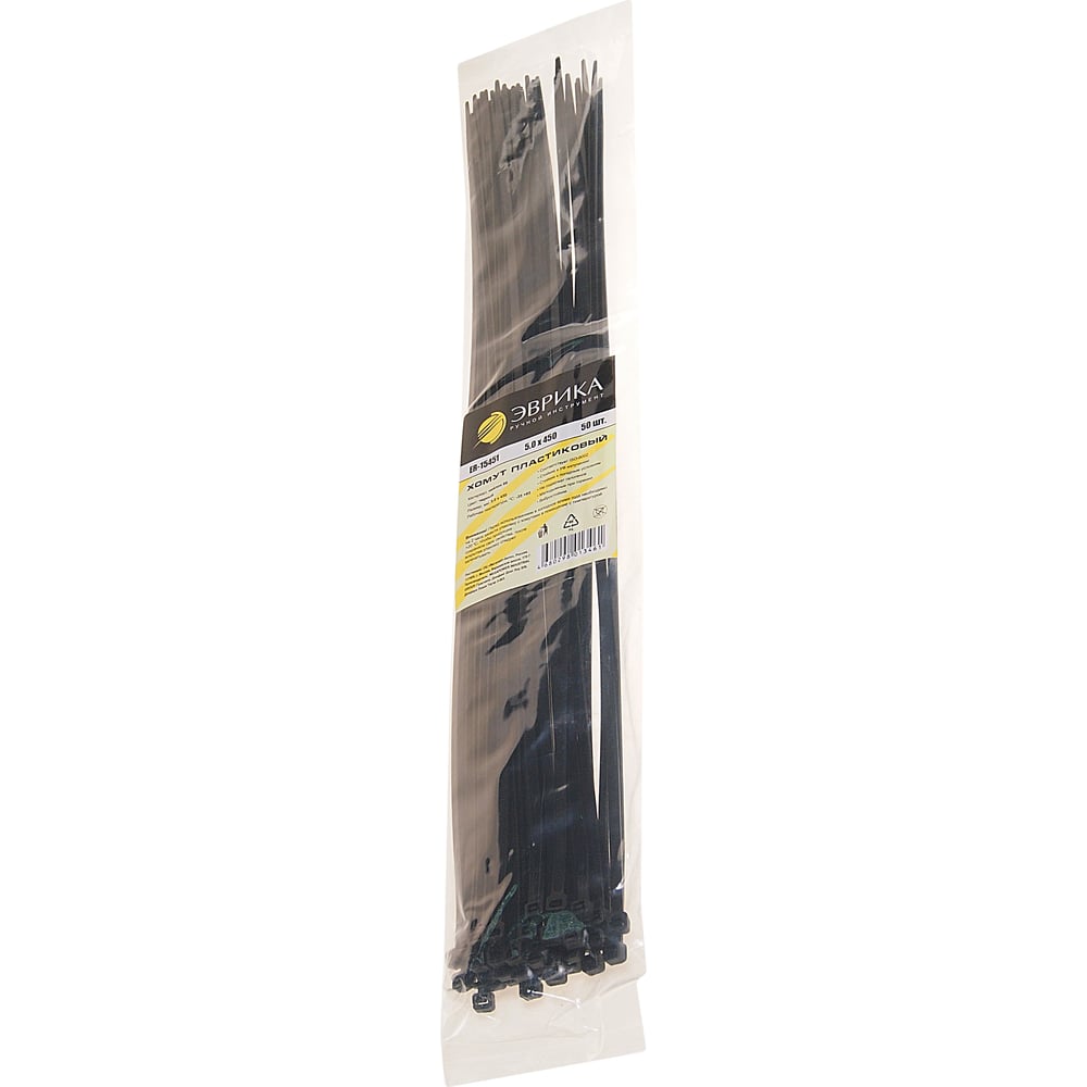 Универсальный пластиковый хомут ЭВРИКА черный 5.0x450мм 50шт ER-15451