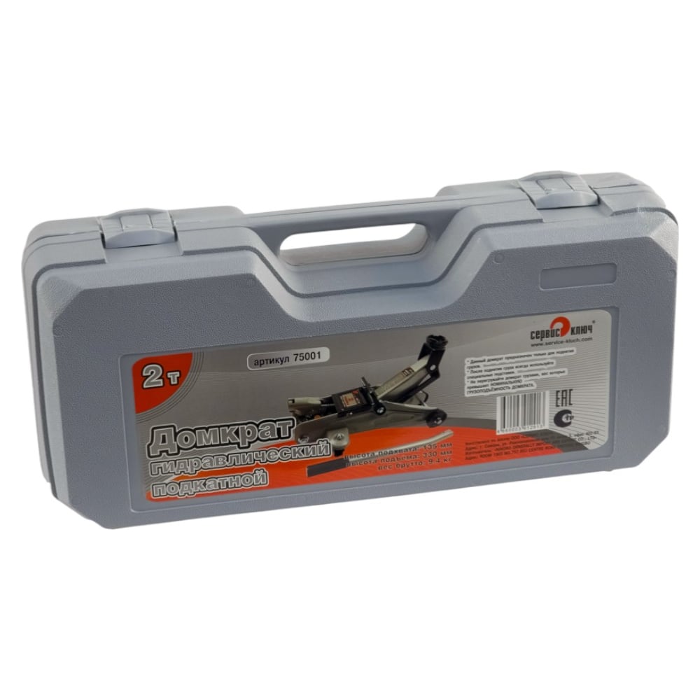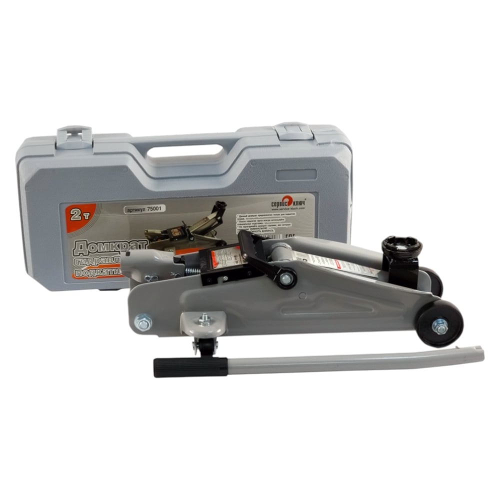 Подкатной домкрат СЕРВИС КЛЮЧ 2 т, малый, ВЫСОКИЙ, в кейсе, 75001