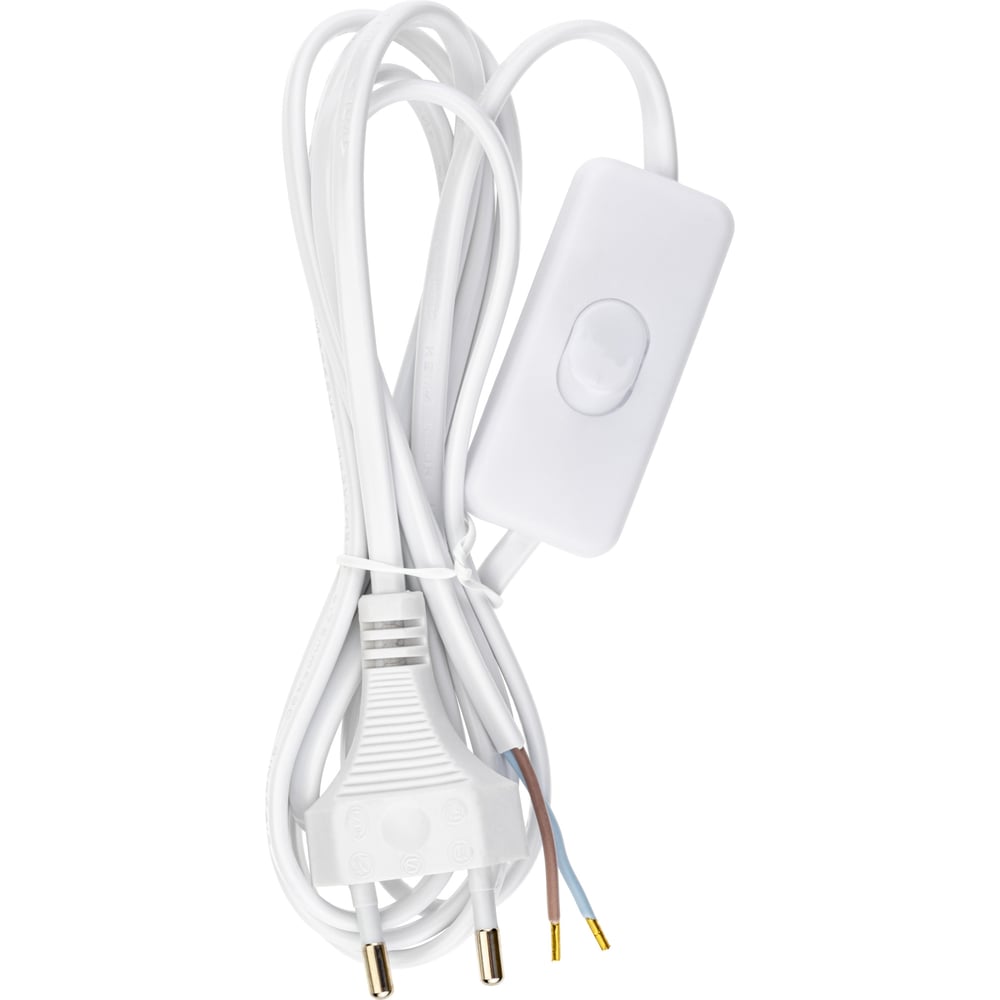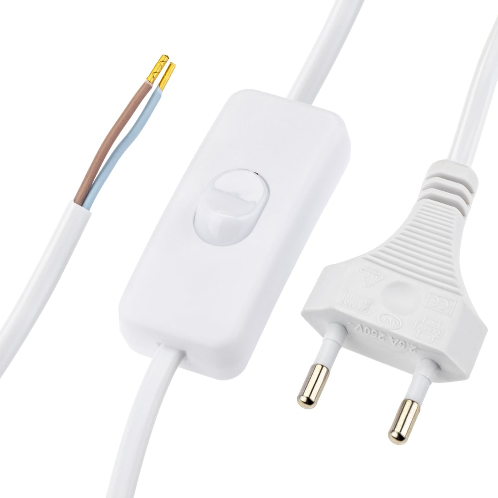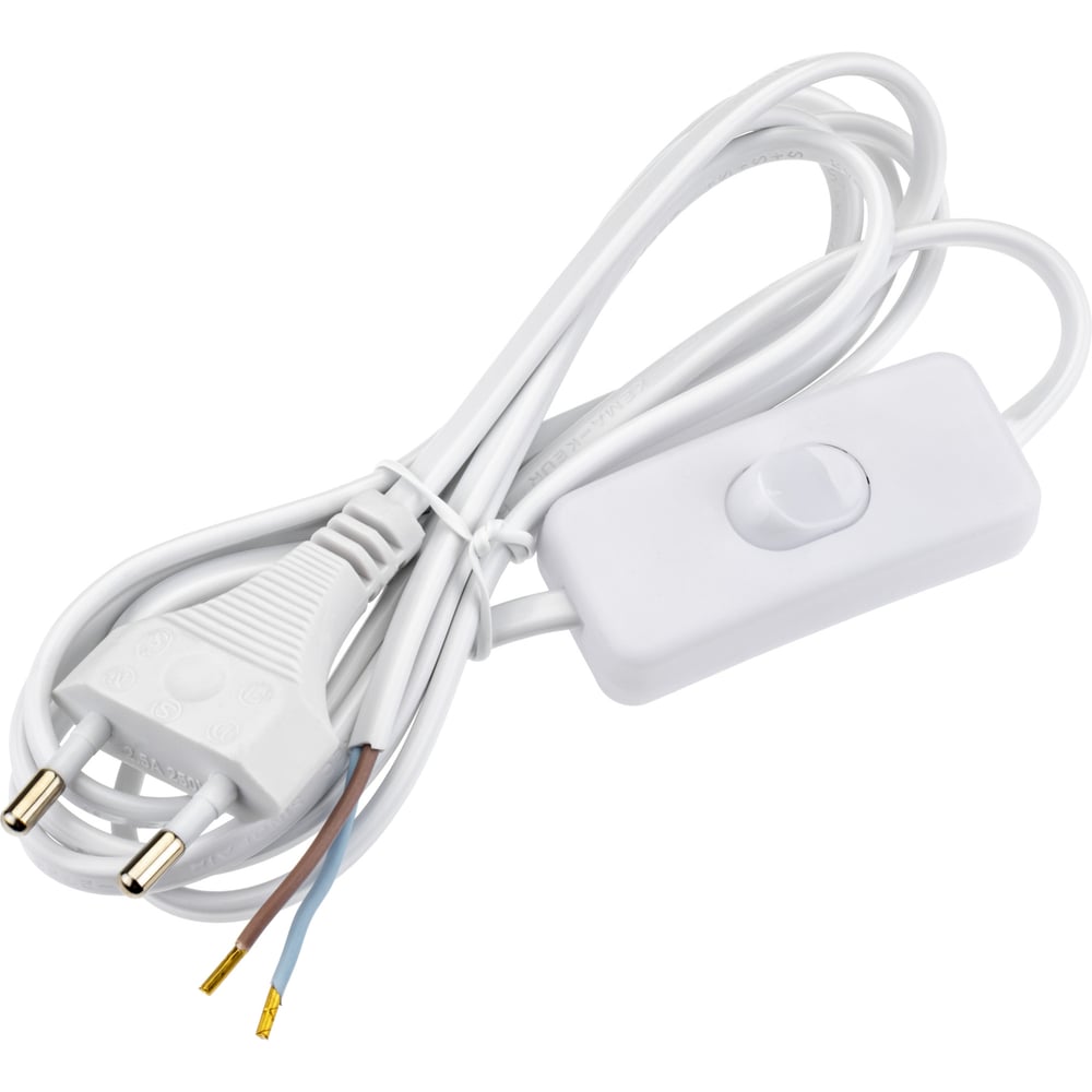 Провод с евроштекером и выключателем duwi белый 2м H 03 VV-F 2x0,5 мм 28569 4