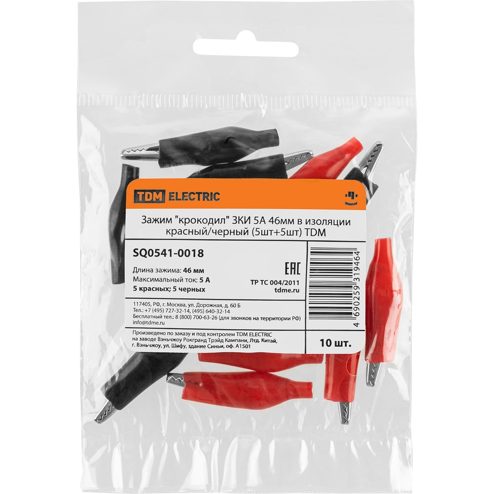 Зажим "крокодил" TDM ELECTRIC ЗКИ 5А 46мм в изоляции красный/черный (5шт+5шт) SQ0541-0018