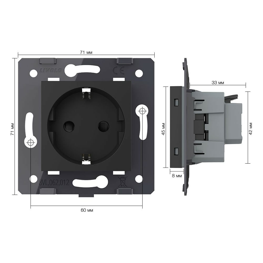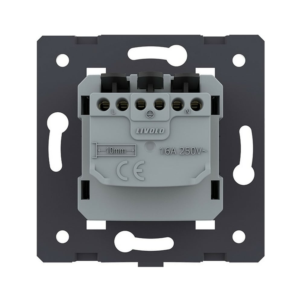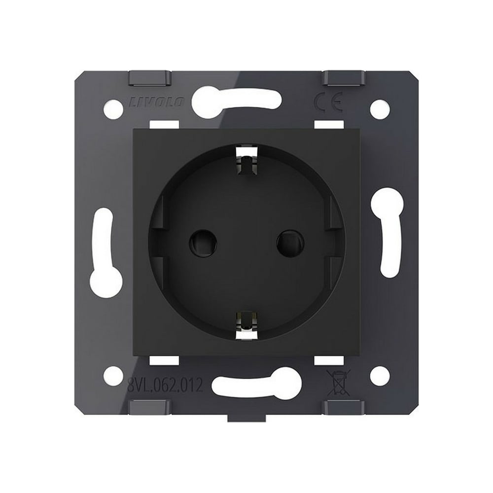 Электрическая розетка LIVOLO с заземлением защитными шторками 16A, зажимы, цвет черый (механизм) VL-FCTC16A-2BPS01