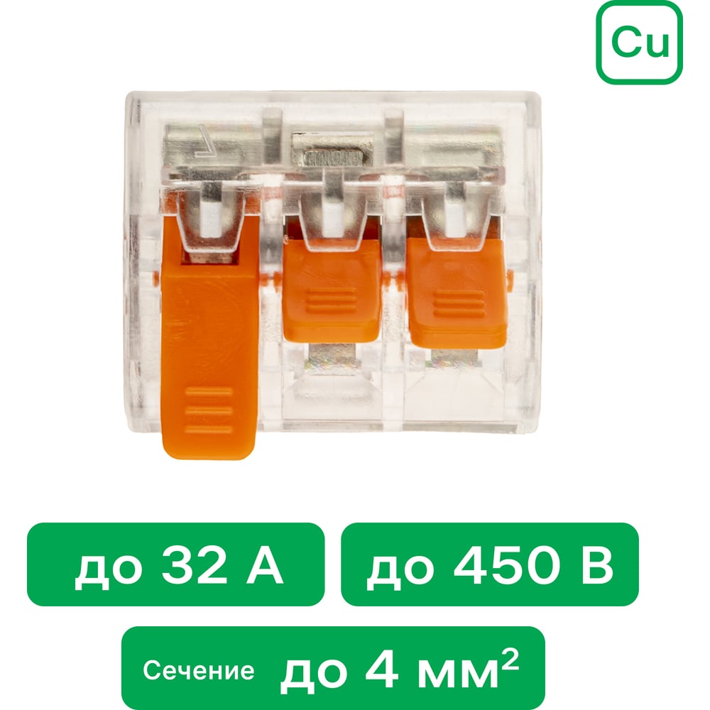 | Количество зажимаемых проводов | 3 шт |