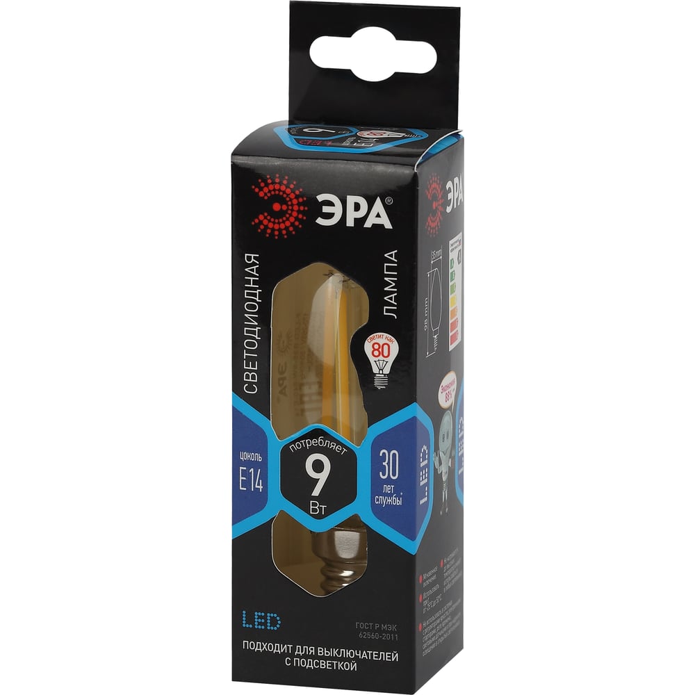 Филаментная лампа ЭРА FLED B35-9w-840-E14 свеча, 9 Вт, нейтральная, E14, 10/100/3500 Б0046995