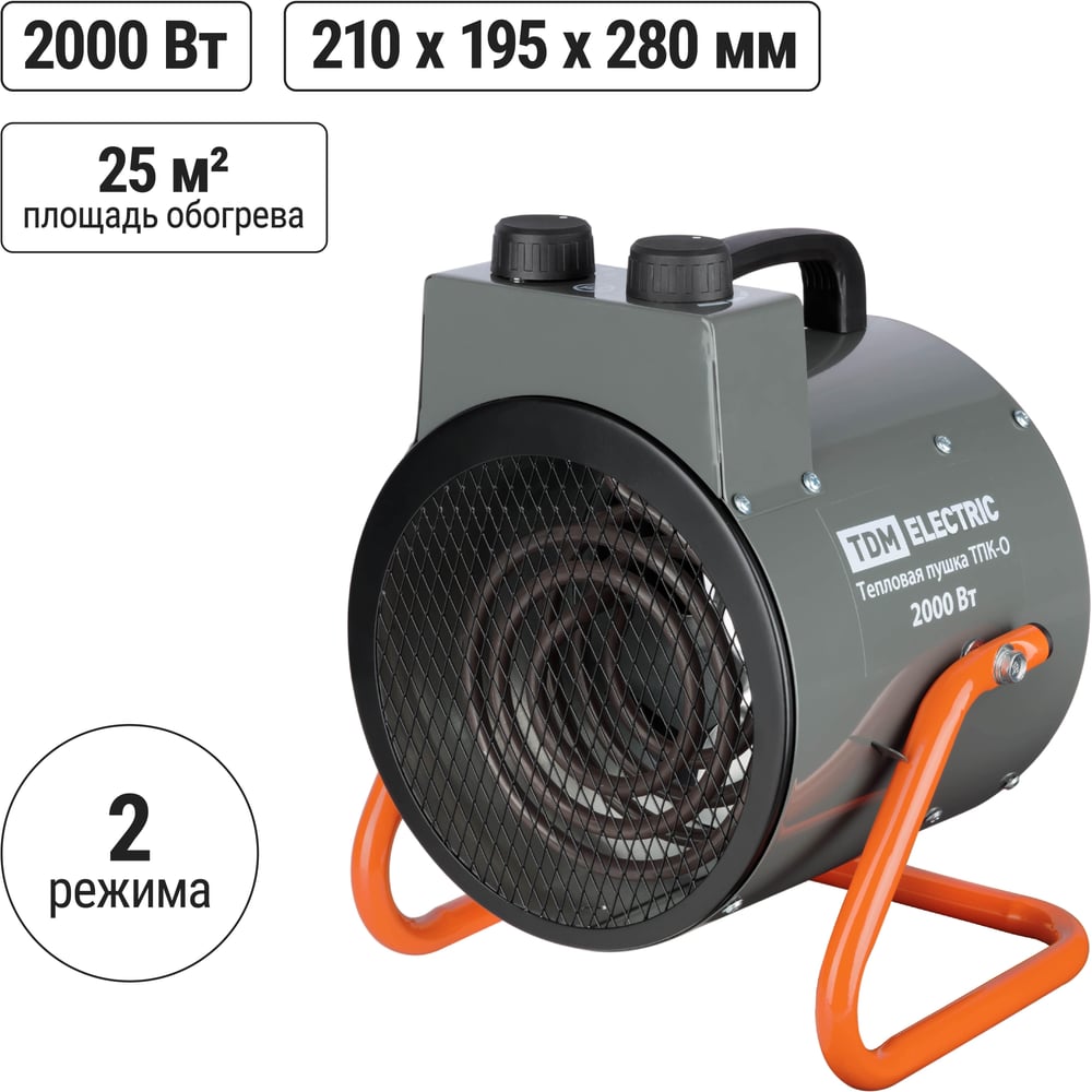 Тепловая пушка TDM ELECTRIC тпк-о, 2 квт, круглый корпус, терморегулятор, SQ2520-0109