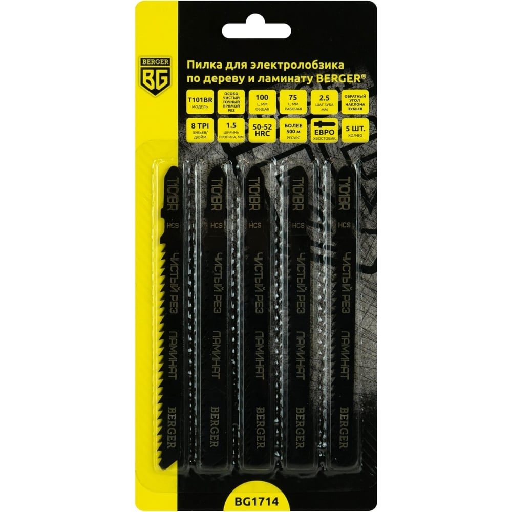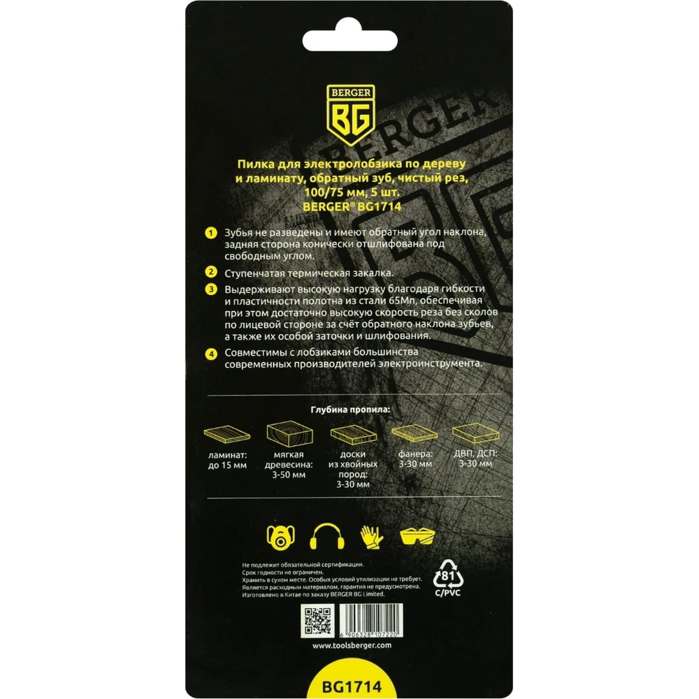 Пилка Berger BG для эл.лоб. дер.и лам-т T101BR, обр.зуб, чист.рез 5 шт, шаг 3.0 мм, 100x75 мм BG1714
