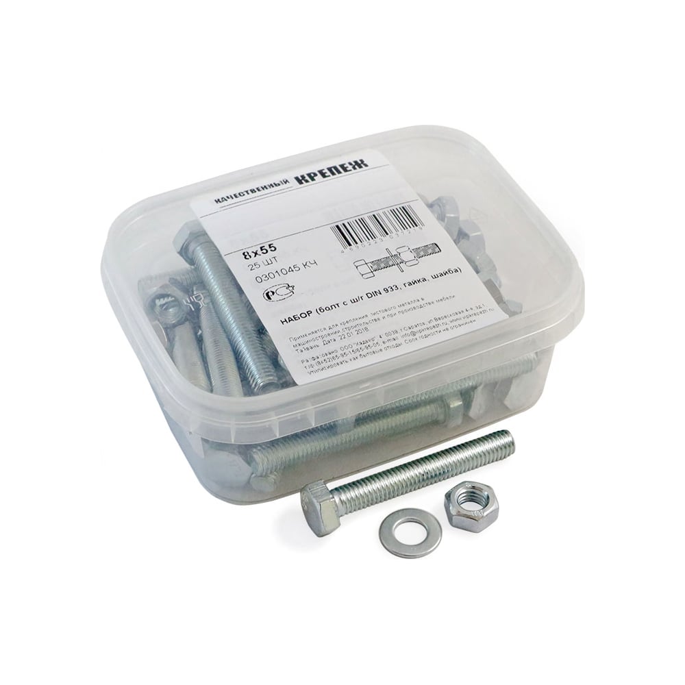 Болт с ш/г полная резьба DIN 933 Качественный КРЕПЕЖ набор 8х55 25 шт 0301045 КЧ