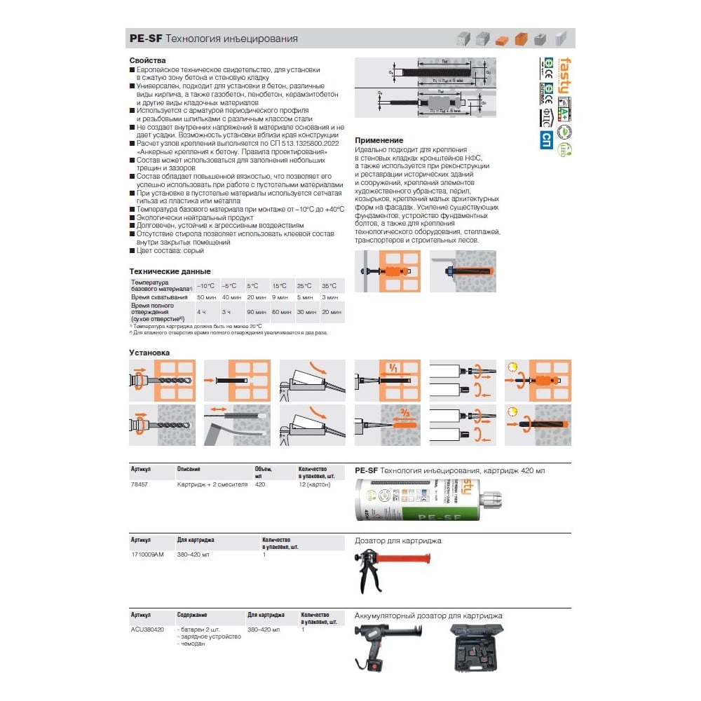 | Вид анкера | Картридж Fasty Pe-sf |