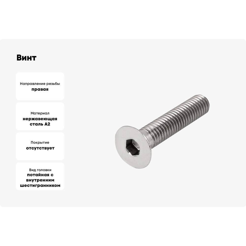 | Вид головки | потайная с внутренним шестигранником |