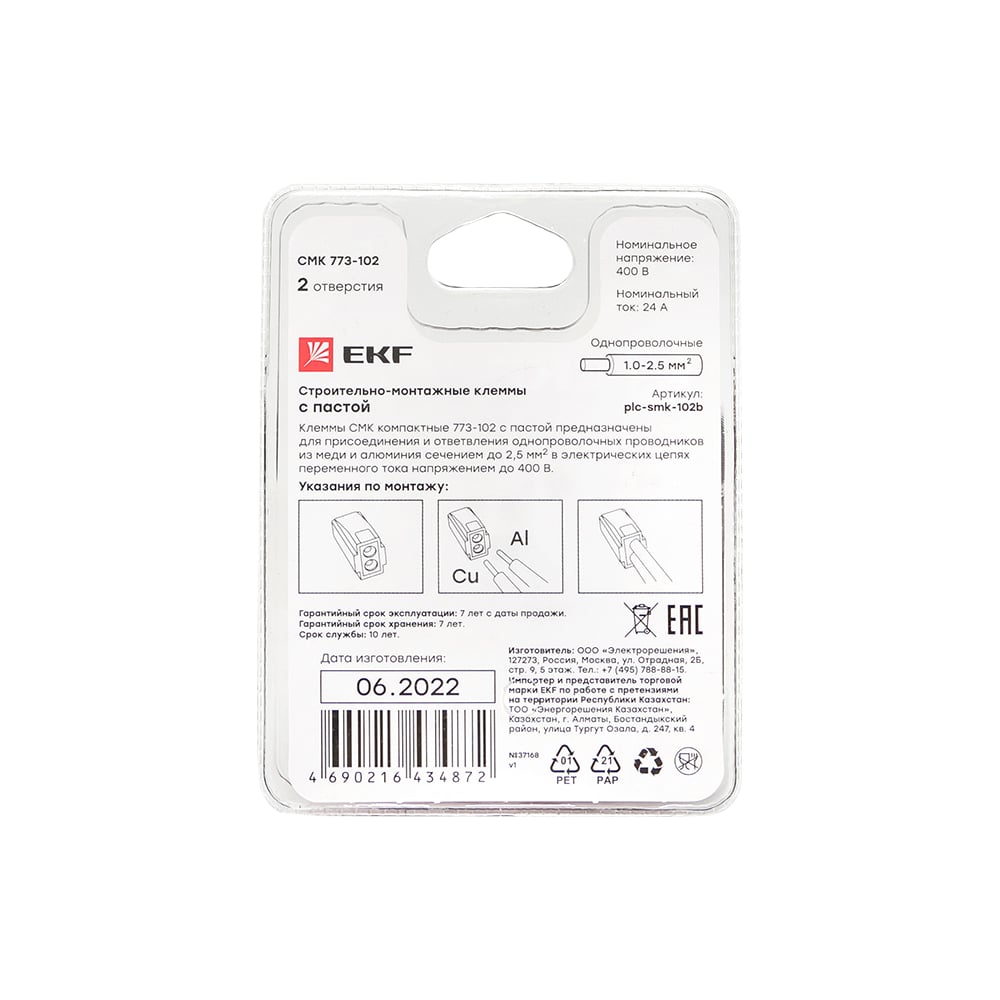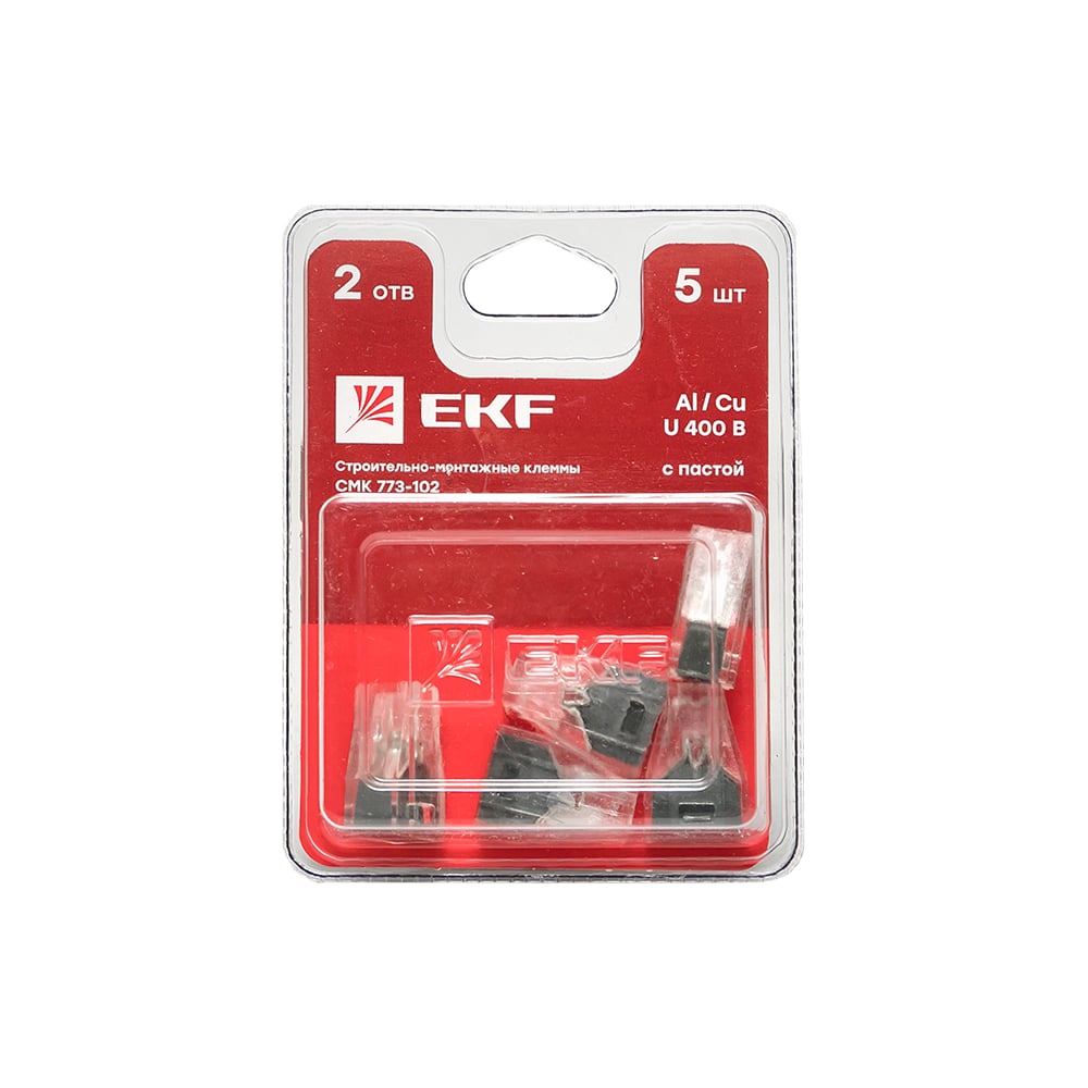 Строительно-монтажная клемма EKF СМК 773-102 2 отверстия, 1,0-2,5мм2, блистер, 5 штук, PROxima plc-smk-102b