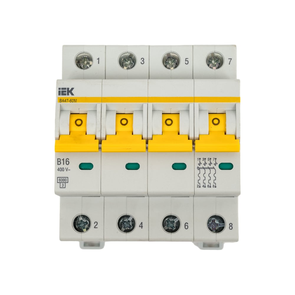 Автоматический выключатель IEK ВА47-60M 4Р 16А 6кА B MVA31-4-016-B