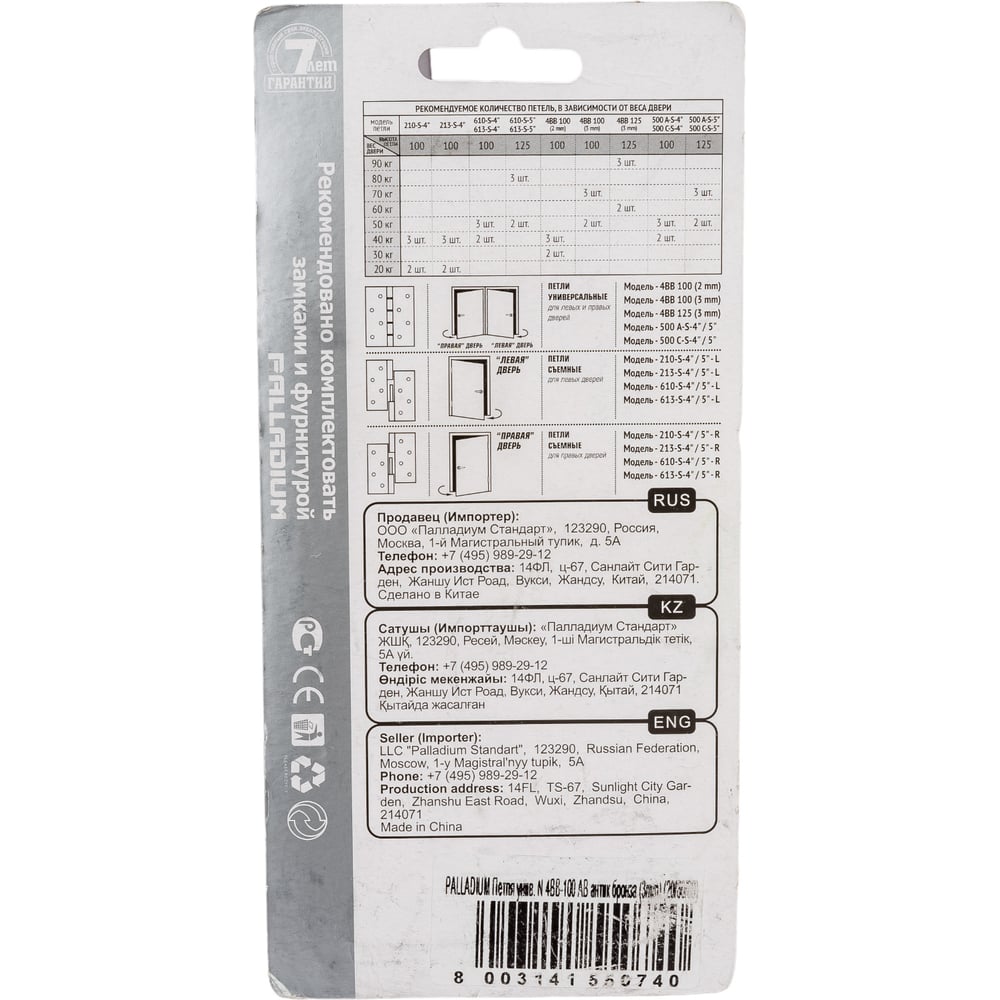 Универсальная дверная петля Palladium N 4BB-100 AB 10890